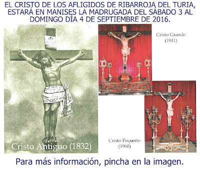 La Junta de Hermandades de la Semana Santa Manisera, junto a otras asosiaciones del la Ciudad, han preparado la llegada a Manises de la imagen del Cristo de los Afligidos de Ribarroja del Turia.