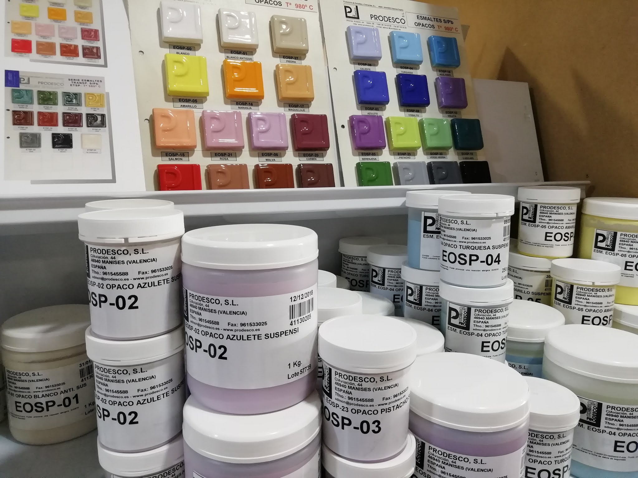 expuesto todas las extensas gamas de fritas, esmaltes y engobes