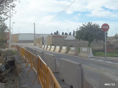 Camí tallat, en el que s’indica la desviacio, pero a partir d’aci no hi ha cap de senyal. Tampoc diu que els treballadors del Poligon de Jerónimo poden passar a les fabriques, o no, i tenen que pegar la volta.