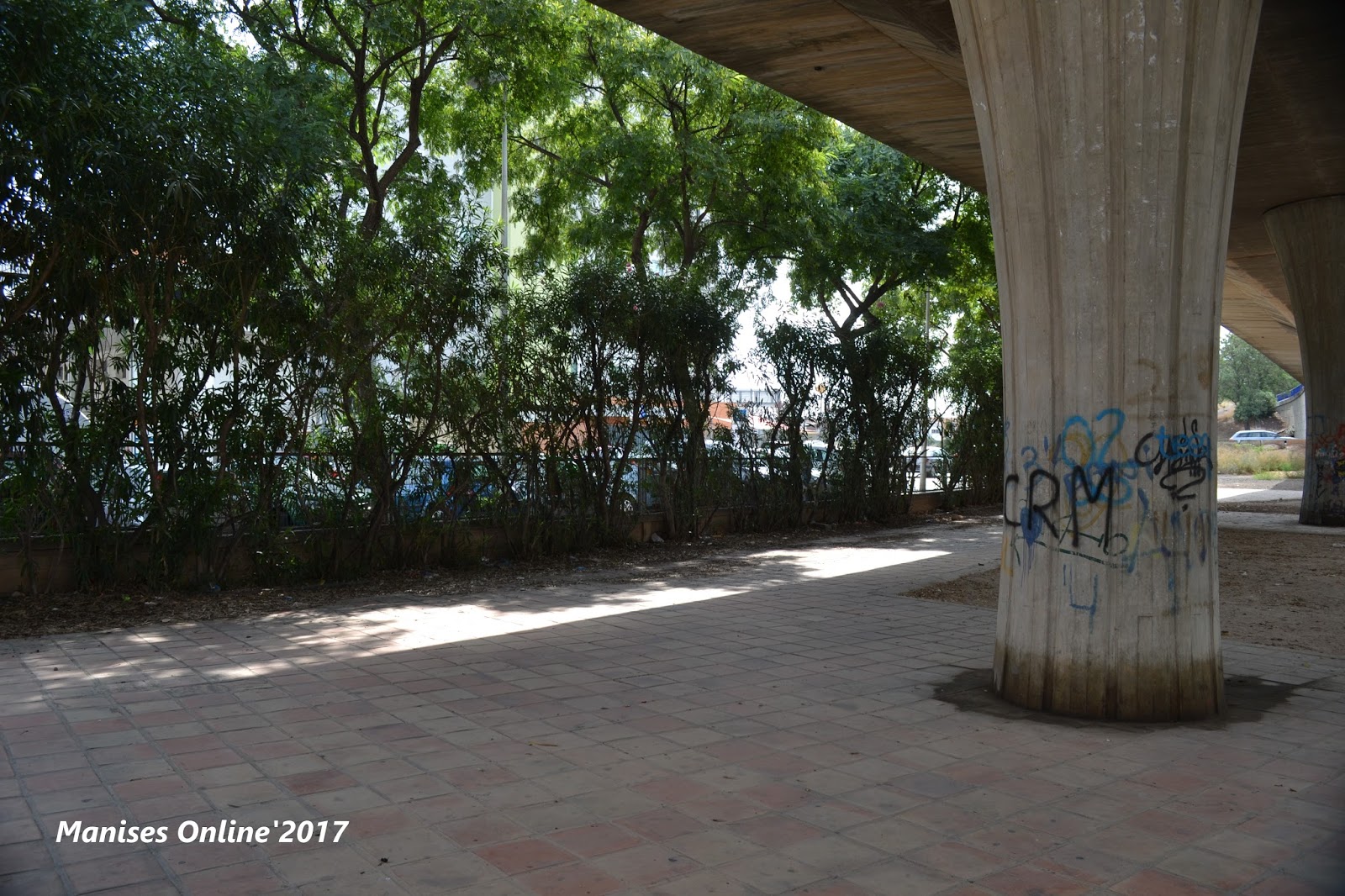 SITUACIÓN EN QUE SE ENCUENTRA EL JARDÍN DEL M.O.PU. (MINISTERIO DE OBRAS PÚBLICAS) QUE FUE CEDIDO A MANISES, EN 1987, COMO CONSECUENCIA DE LA CONSTRUCCIÓN DEL PUENTE PARA PODER ACCEDER AL AEROPUERTO DESDE PATERNA.