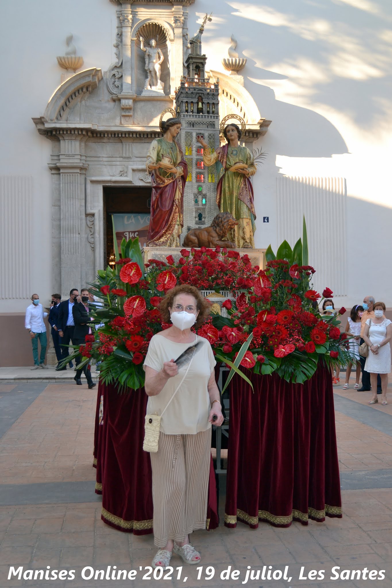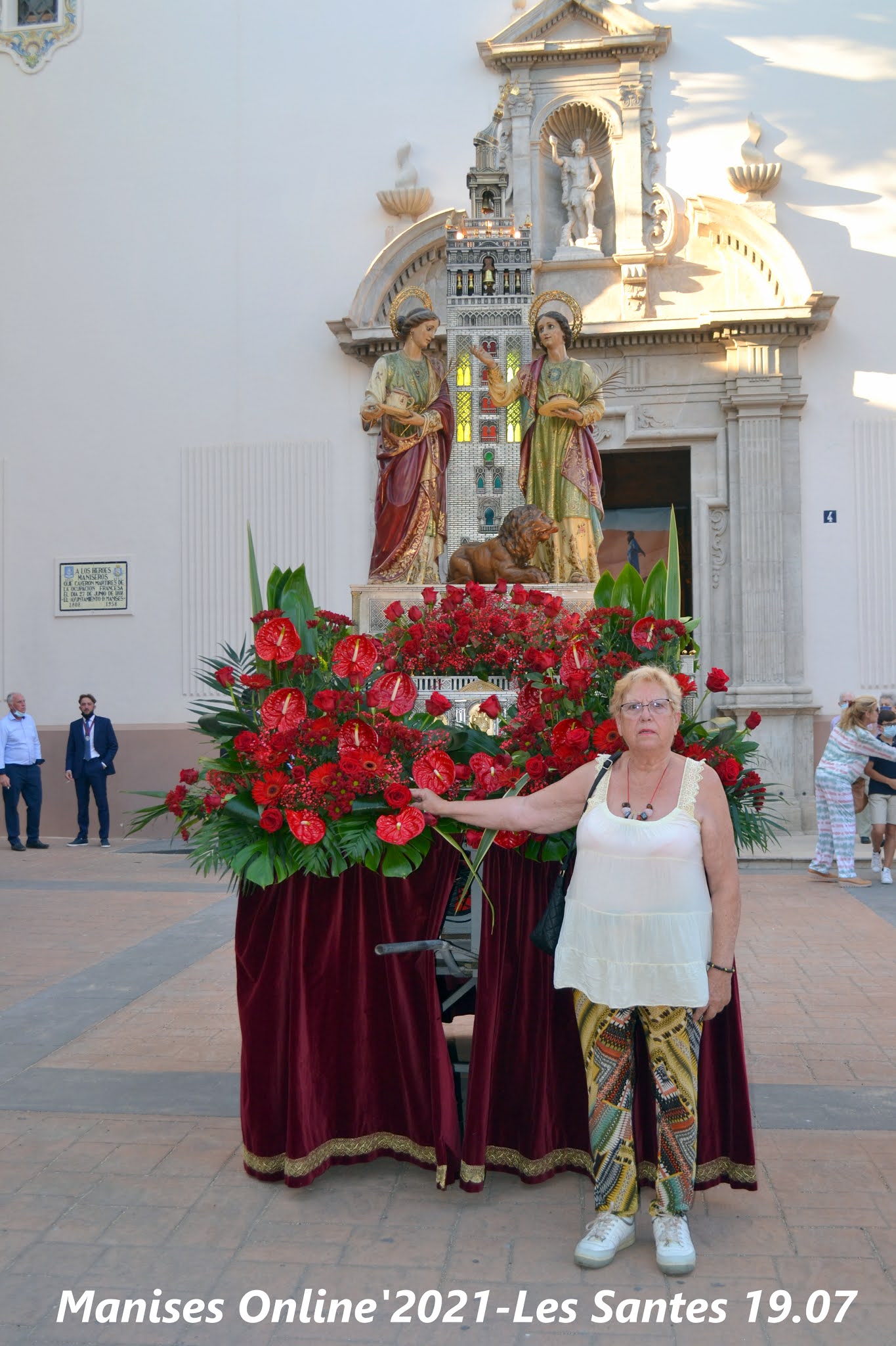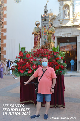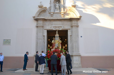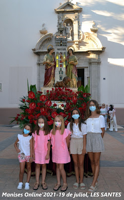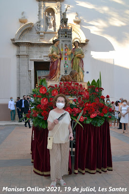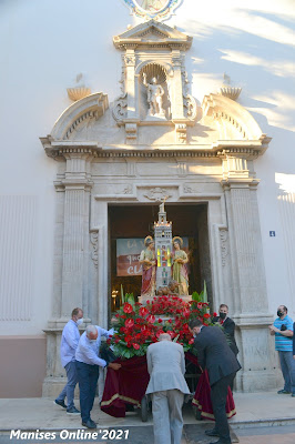 Al finalizar la imagen de Les Santes fueron sacadas a la Plaza de la Iglesia para que todas aquellas personas que no habían podido entrar en la iglesia pudieran poder venerarlas y poder fotografiarse con ellas, como así sucedió.