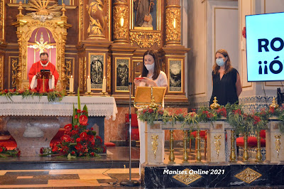 El Coro Parroquial compuesto por Ana Peiró Sánchez, Inma Gimeno Víe, Javier Miquel Marticorena, Emi Leal Marzo, Paco Catalá, Pilar Borrás Sanchis, Elena M. Ferrís Villaplana, actuando como director Jesús Gimeno Víe. Acompañaron la celebración con música y cantos propios de la fiesta a las Patronas de Manises.