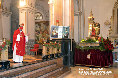 Los Clavarios de Santas Justa y Rufina participaron activamente en el desarrollo de la Santa Misa, ya sea leyendo las Lecturas. Moniciones o Preces, con introducciones a cada una de ellas en las que se hacía mención a la fiesta a Nuestras Patronas.