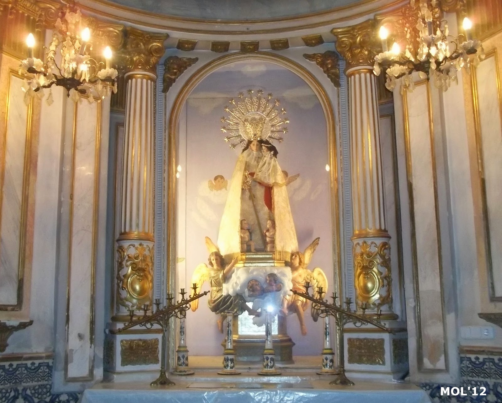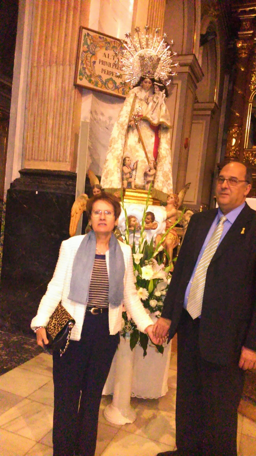 Este es el Altar de la Virgen de los Desamparados, en la Parroquia de San Juan Bautista de Manises, donde se guarda todo el año. Junto a el -mirando a la derecha- se encuentra el mural de azulejos donde está enterrado el cuerpo del Beato Vicente Vilar David, hijo de Manises.