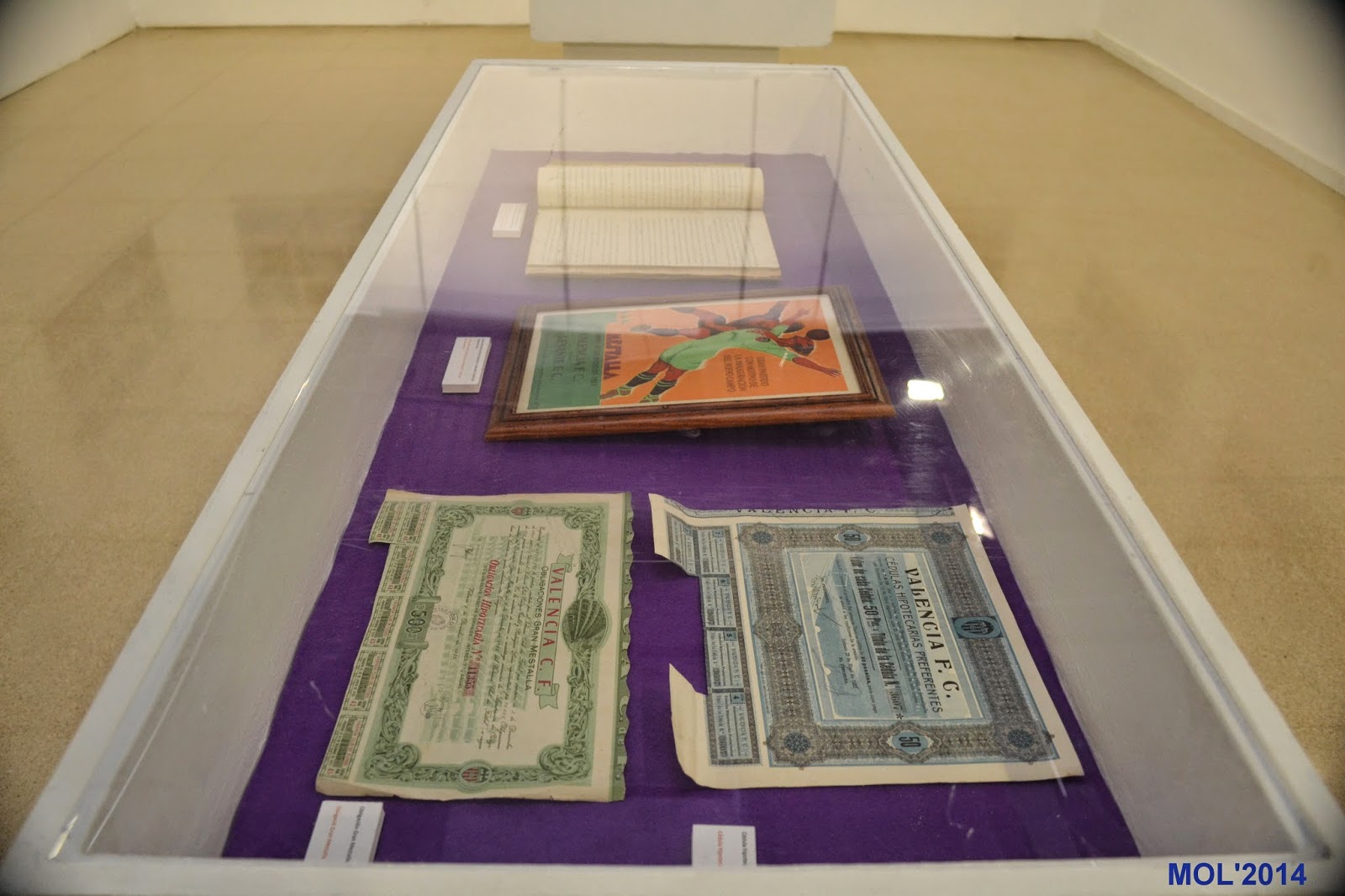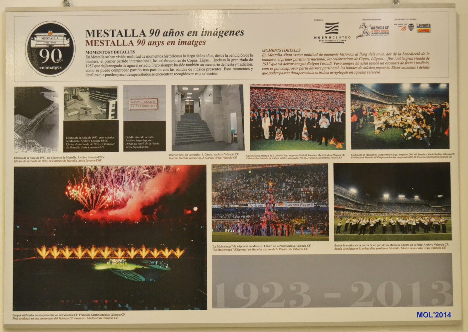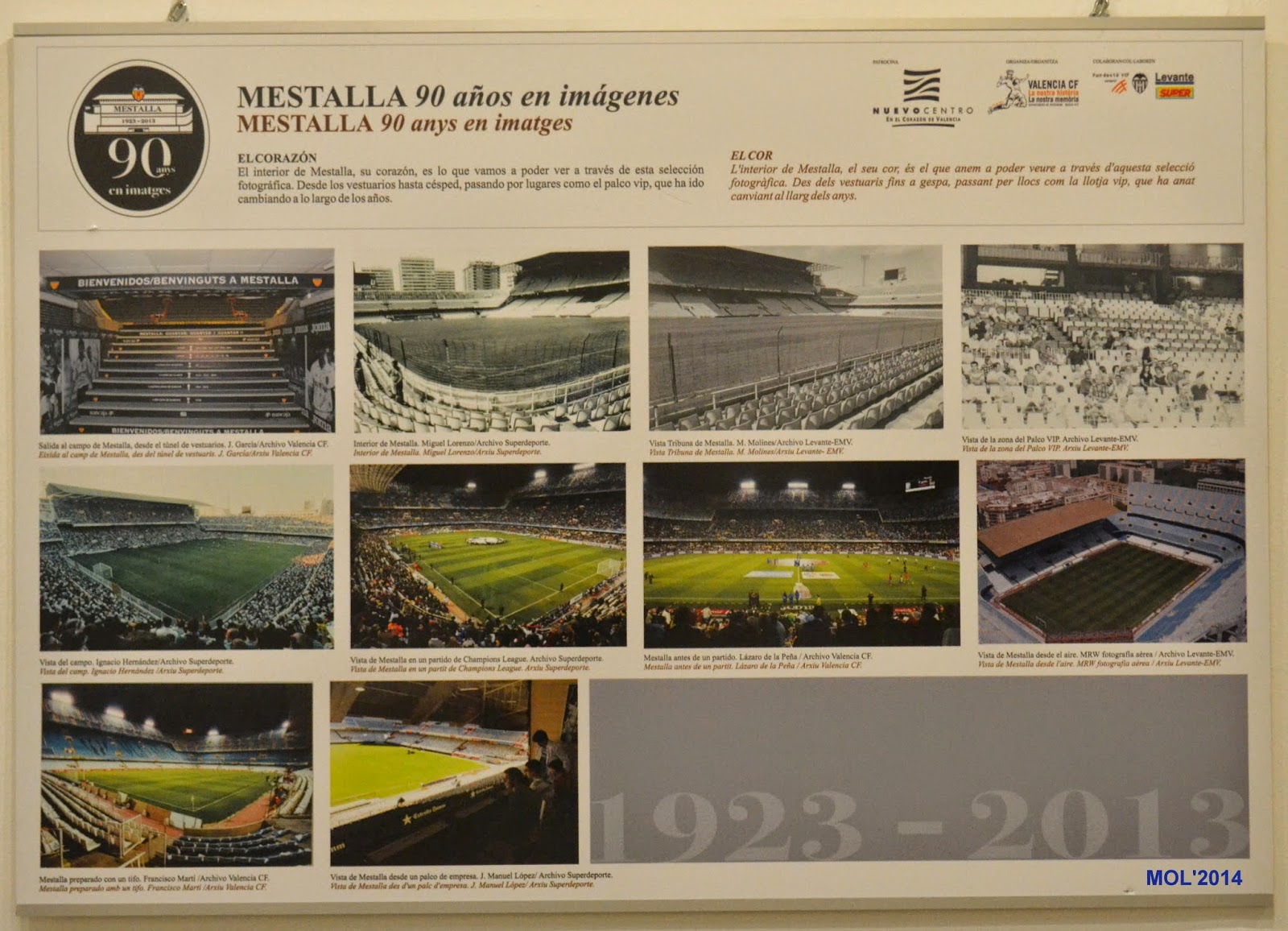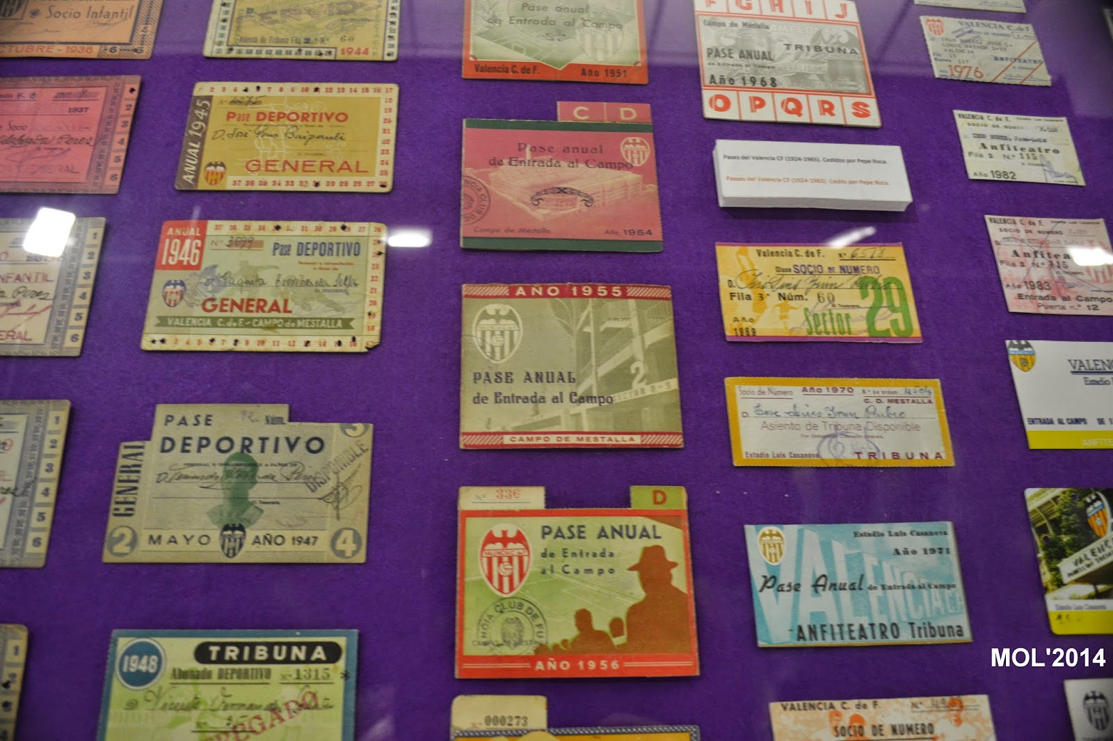 Desde los planos antiguos, con detalle del lugar y gradas, pasando por los diferentes momentos que han hecho grande a este club, se plasman en las distintas fotografías que se muestran al visitante. No falta una visión retrospectiva de las antiguas entradas y pases que el Valencia recuerda en los expositores que allí se encuentran.