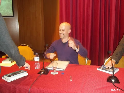 L’autor Juan Carlos García Hoyuelos, en el moment en que estava dedicant el seu llibre als assistents.