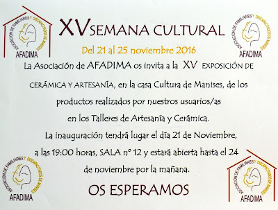 Como ya viene siendo habitual todos los años A.FA.DI.MA celebra su Semana Cultural, en la que expone al público todos los trabajos artesanales realizados por los alumnos durante el curso.