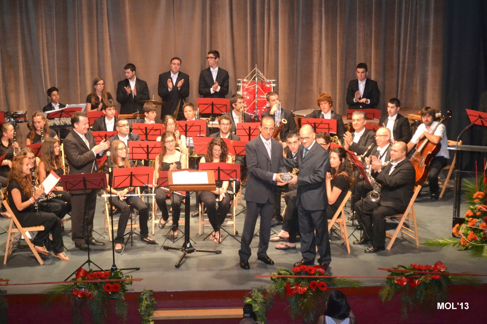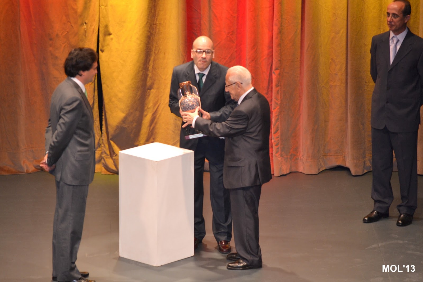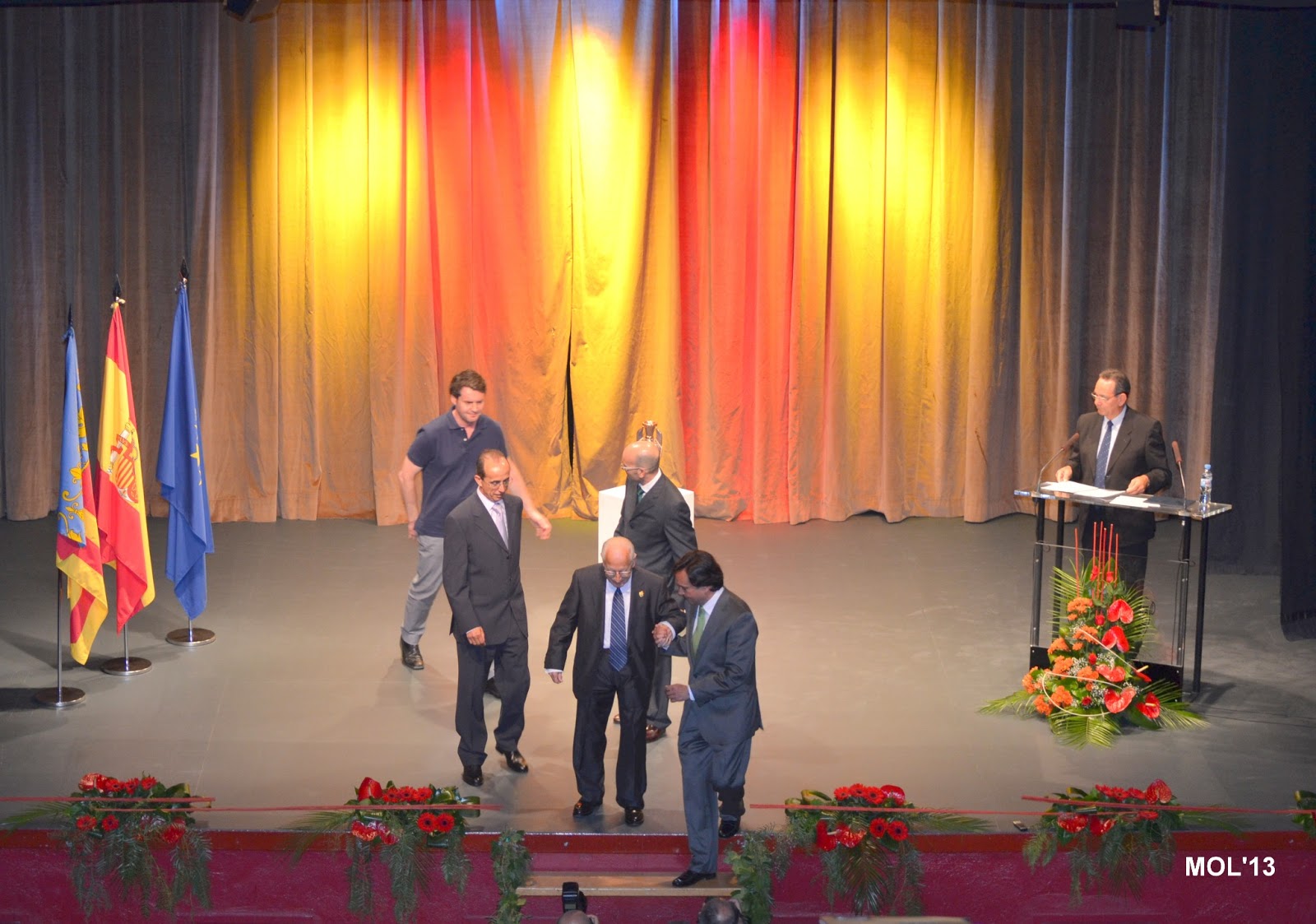 Una vez terminada la actuación del mantenedor, Paco Tos -el presentador- solicitó la presencia en el escenario del Alcalde, del Presidente de la Clavaría Francisco Navarro Martínez y del ceramista autor de l’amfora Arturo Mora Benavent, que junto al mantenedor, que ya estaba en el escenario, esperaban la llegada de Luis Montesinos.