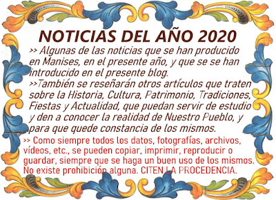 Hasta el mes de diciembre de 2018, en la parte derecha del blog, en el comienzo del Menú, se incluían unas informaciones relacionadas con los artículos que se iban introduciendo, ya fuese en reportajes fotográficos, noticias de fiestas, biografías, catálogos de cerámica, etc.