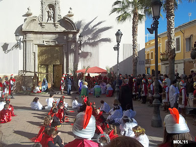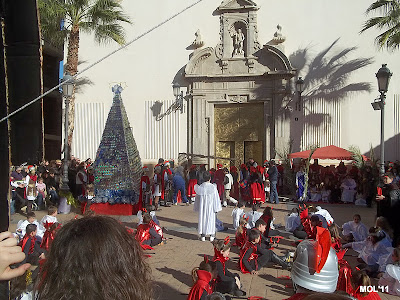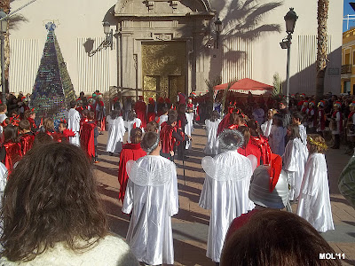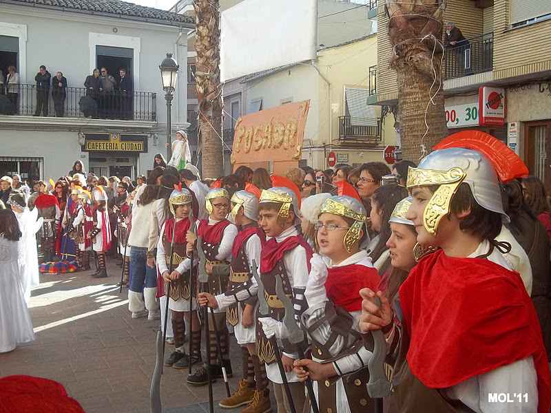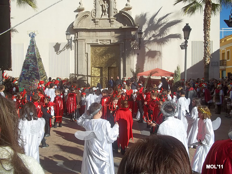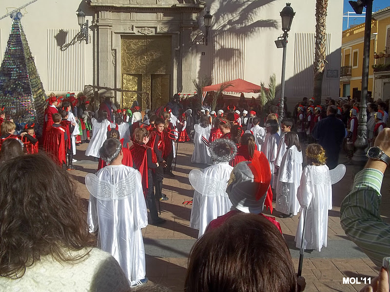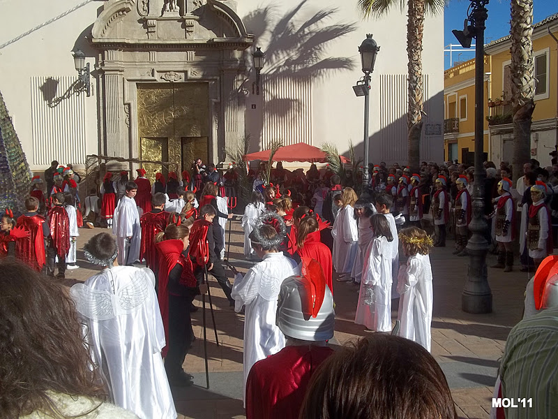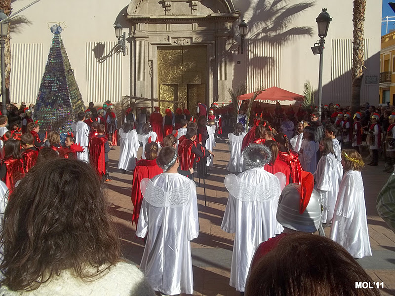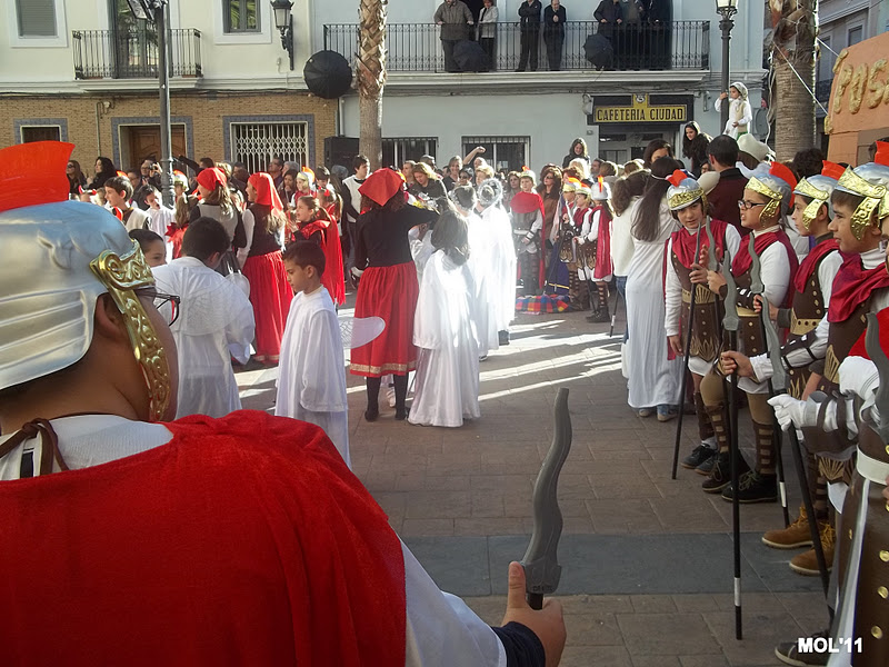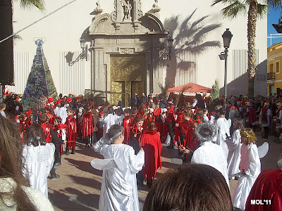 A las 11:00 horas de la mañana, del jueves día 22 de Diciembre, ha comenzado el acto, en el que el escenario ha sido la totalidad de la plaza, y a su alrededor los padres, abuelos y maniseros que no han querido perderse este acto.