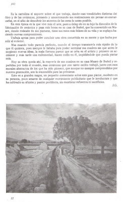 La segunda, firmada por J.G., que es más técnica y más profesional, y profundiza en las técnicas y formas de su pintura, su influencia, sus maestros y las diferentes etapas de su vida, dedicadas a la pintura, su gran pasión. Hace incapie en la pintura, la creación artística y sobre todo en la innovación en sus producciones, fabricando nuevas tendencias que en algunos casos no fueron bien entendidas por los ceramistas contemporáneos.