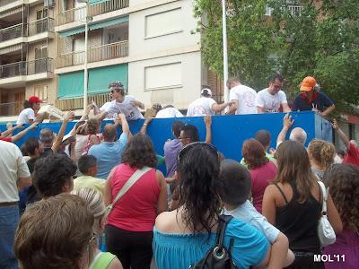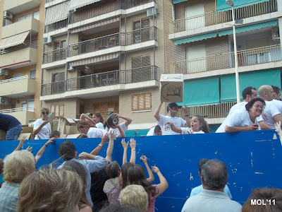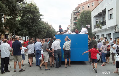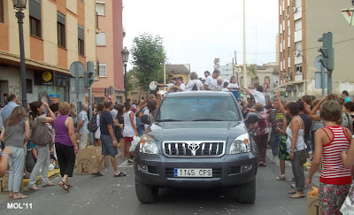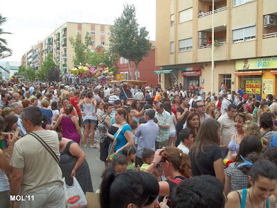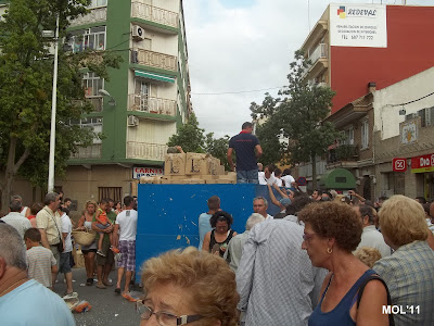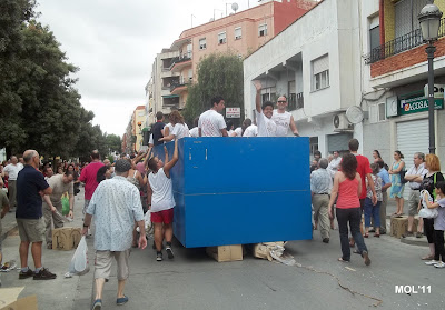 Una carrozas, que como se puede apreciar en el pequeño reportaje fotográfico, iban llenas de cerámica, en las cajas con el logo de Las Santas y con unos Clavarios y acompañantes que no cesaban de entregar a todas las personas, nuestro más preciado tesoro LA CERÁMICA.