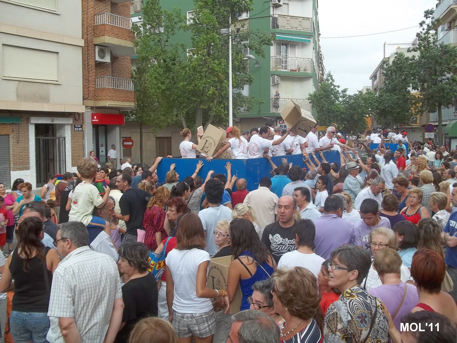 Como se pude apreciar las carrozas –que iban llenas de cerámica- se vaciaron y al final de la Cabalgata se podían ver las cajas vacías en la calle después de que su contenido hubiese sido entregado en la mano, a todo el que quería cogerla. Como también estaban llenas las cajas que muchas familias llevaban, después de haber recogido durante todo el trayecto la cerámica que luego servirá para adornar y decorar las casas.