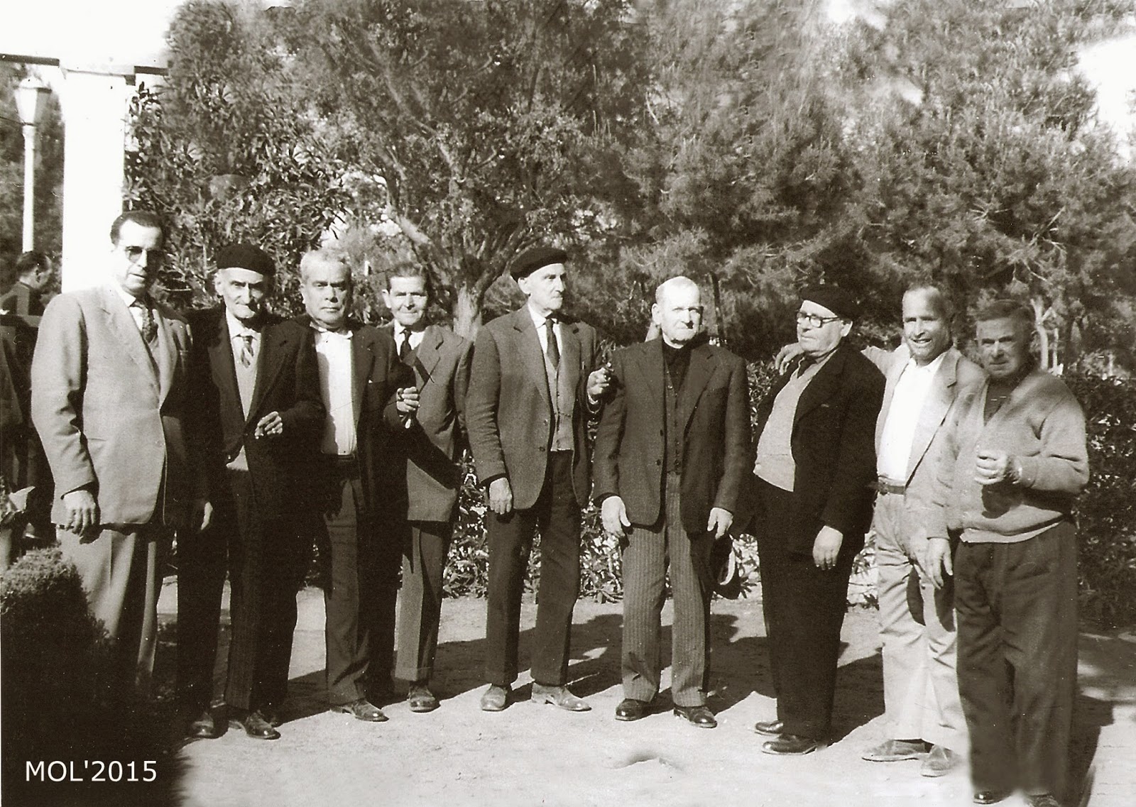Vicente Botet (el traquero), Amadeo Gimeno Bondía, Vicente Gimeno, Manuel Gimeno, Enrique Peris, xxx, Batiste Catalá, Félix Sancenón, Fernandis, Blas Iniesta (El cristalero), Vicente Peris, Pascual Rico, Félix David, Miguel Gimeno, Gabriel (El cartero), Pascual Tadeo. Archivo Eduardo Serrano Gómez.