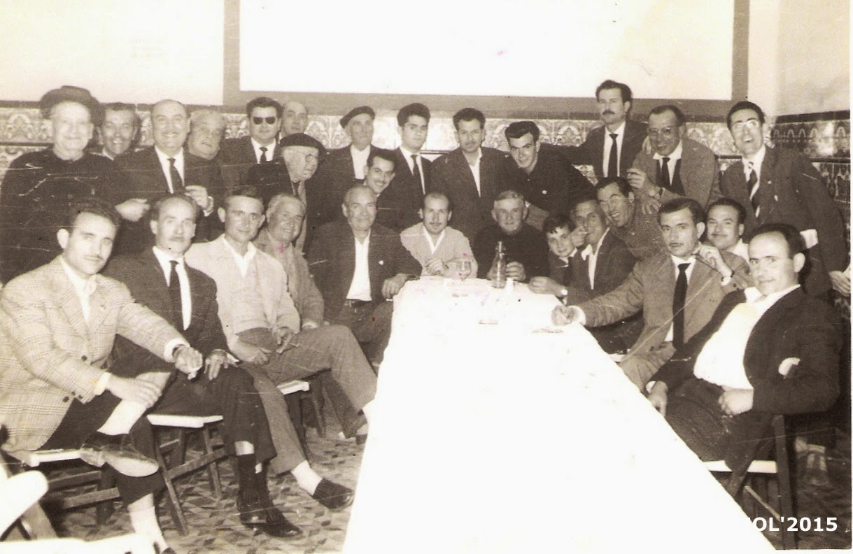 Vicente Botet (el traquero), Amadeo Gimeno Bondía, Vicente Gimeno, Manuel Gimeno, Enrique Peris, xxx, Batiste Catalá, Félix Sancenón, Fernandis, Blas Iniesta (El cristalero), Vicente Peris, Pascual Rico, Félix David, Miguel Gimeno, Gabriel (El cartero), Pascual Tadeo. Archivo Eduardo Serrano Gómez.