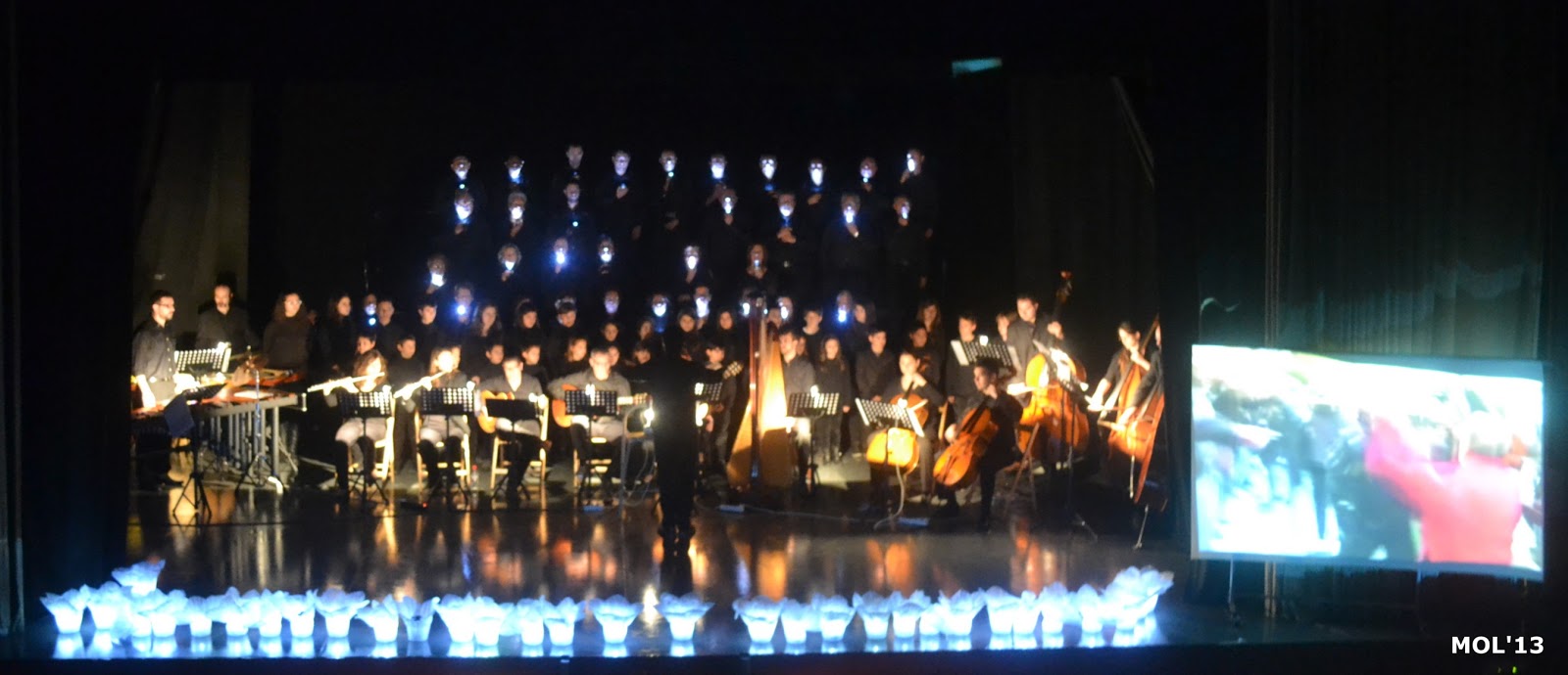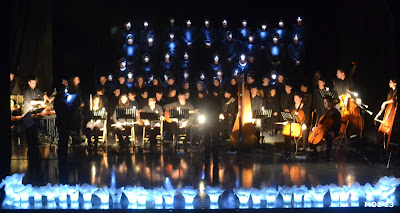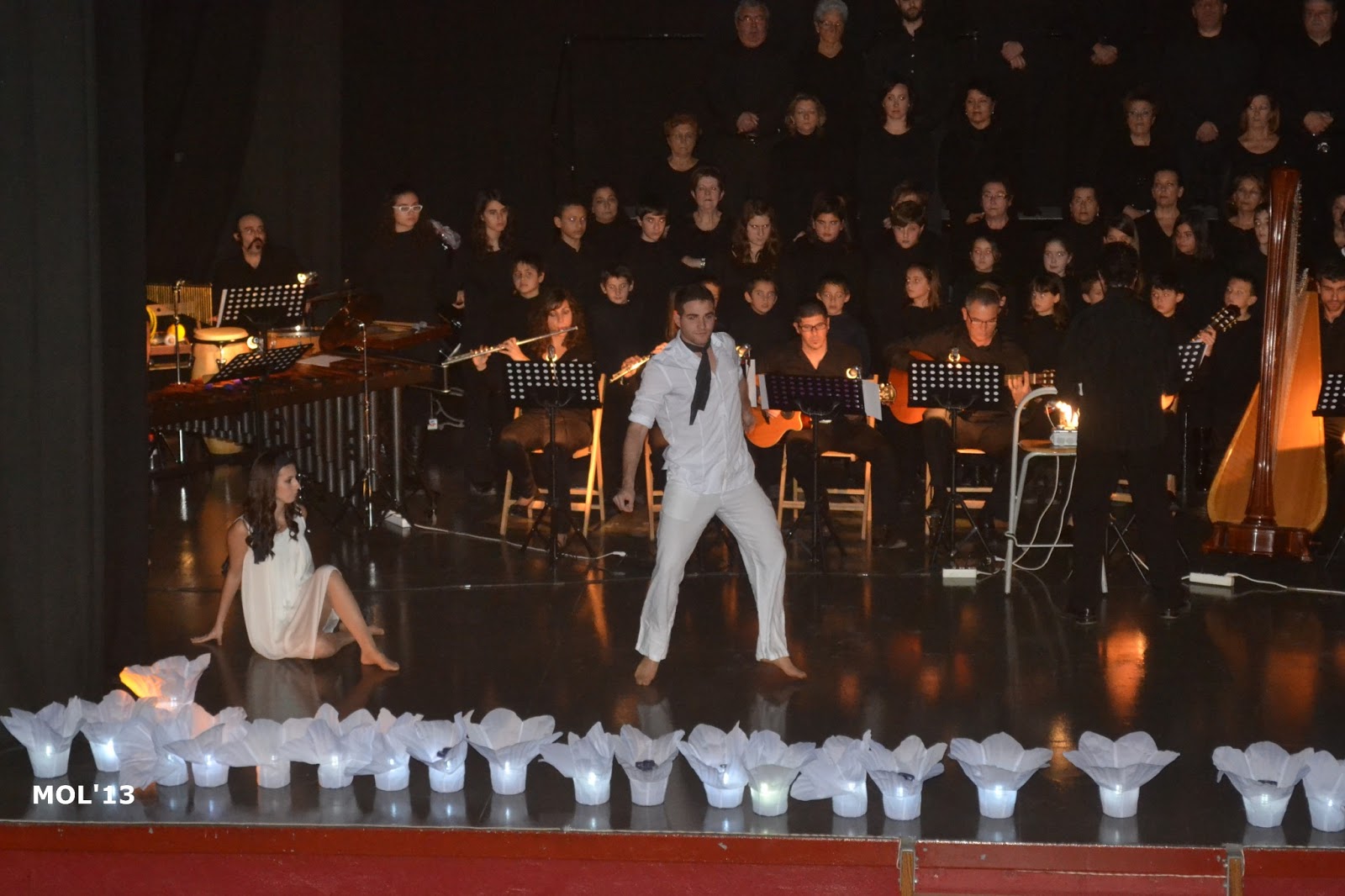 En estas imágenes se muestra el escenario del Auditorio Germanías, así como momentos de la narración y la actuación de los bailarines, dentro del contexto de la CANTATA y la iluminación original de todo el concierto.