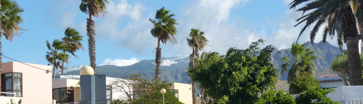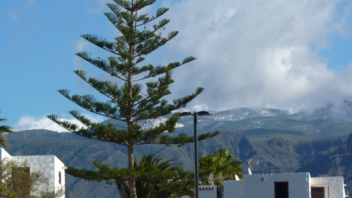 Fotos hechas en Costa Adeje, municipio de Adeje, Tenerife. Es el contraste de la isla, mientras en la zona sur hay sol, en las cumbres a menos de 1.500 metros de altura, puede nevar.