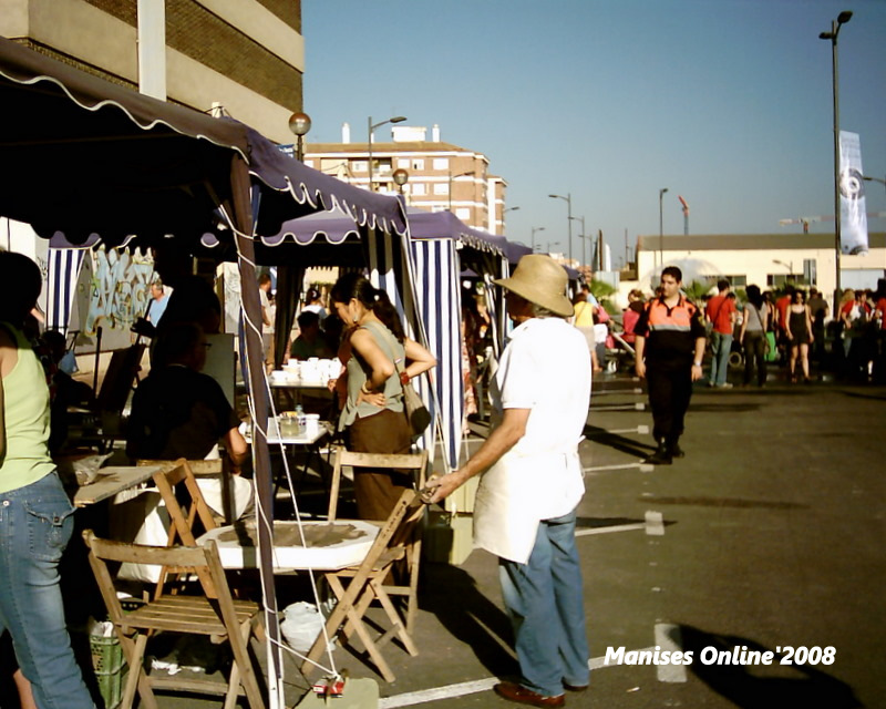Durante los días del 11 al 13 de Julio, en la explanada del aparcamiento del metro -parada MANISES- el Ayuntamiento de la Ciudad ha preparado el lugar para que los artesanos ceramistas maniseros hagan las demostraciones de su trabajo de moldear el barro y cocer esas cerámicas que luego son las que decoran, o usamos, en nuestras casas.