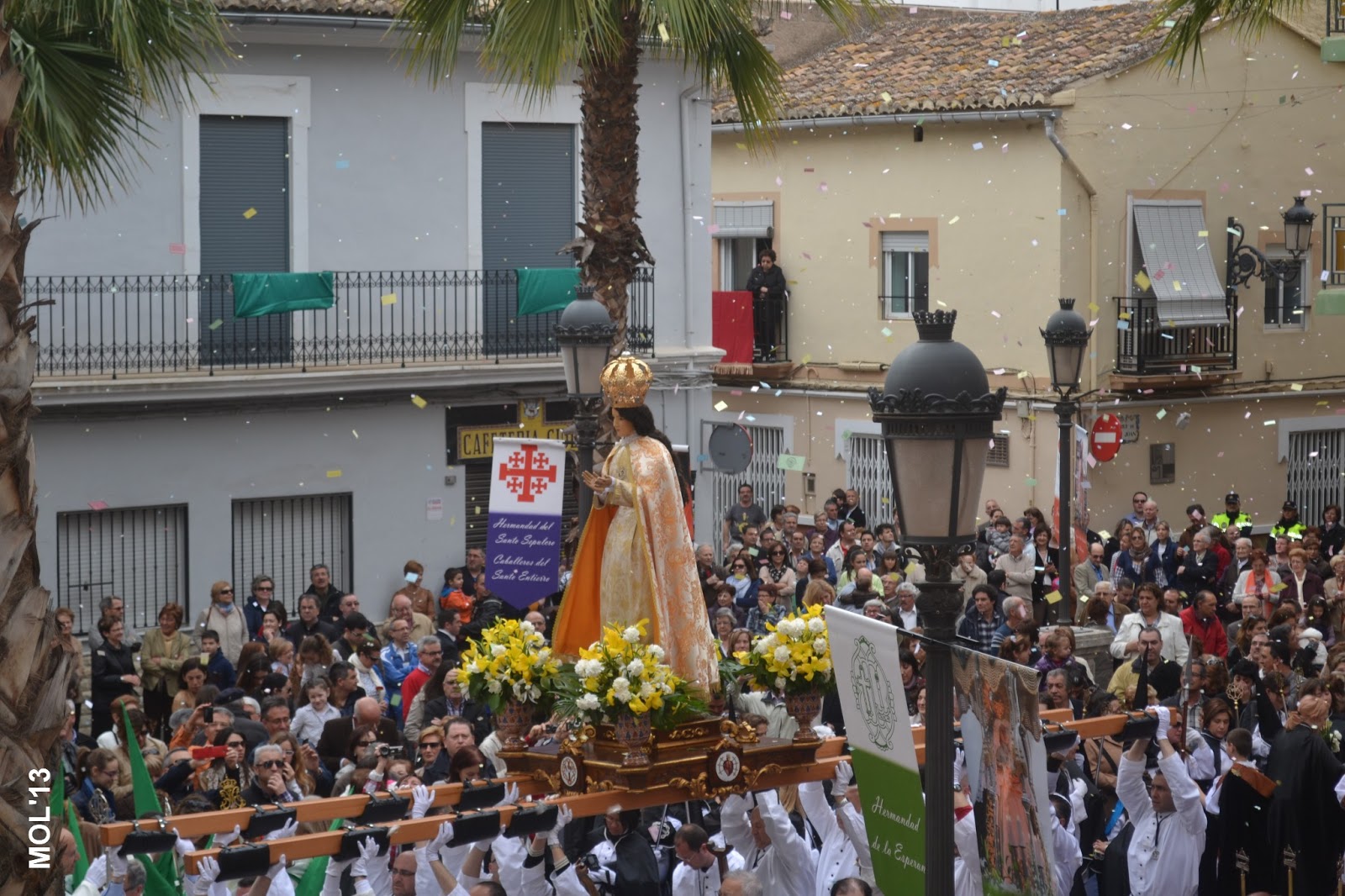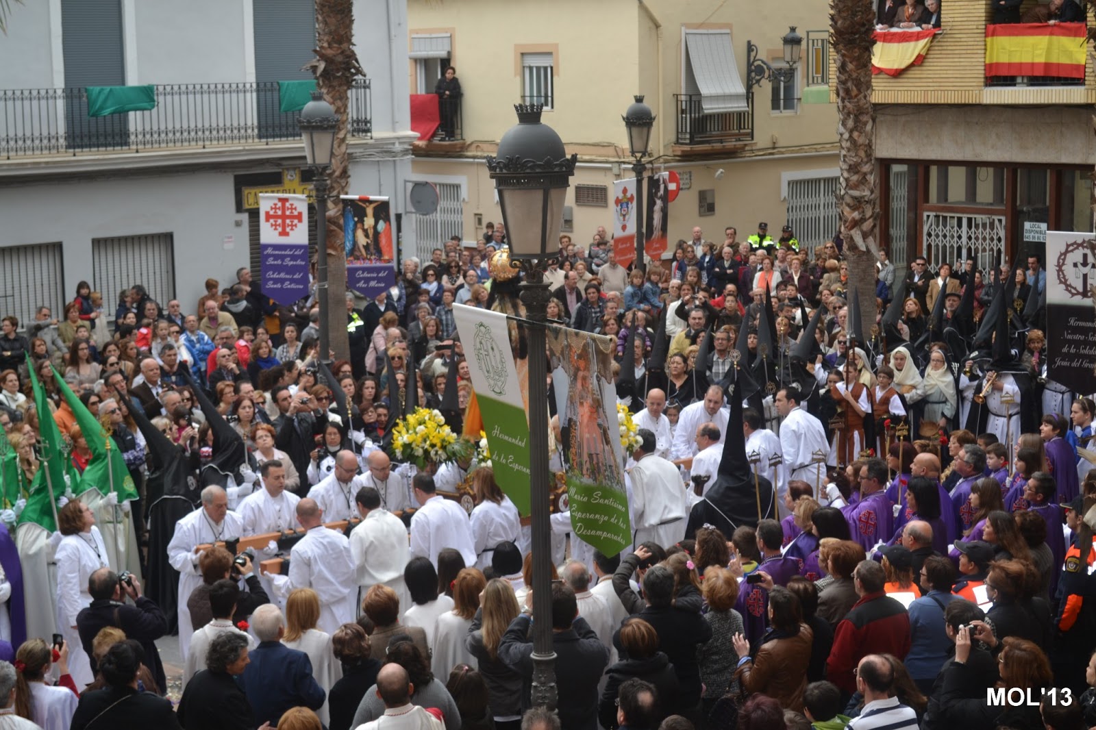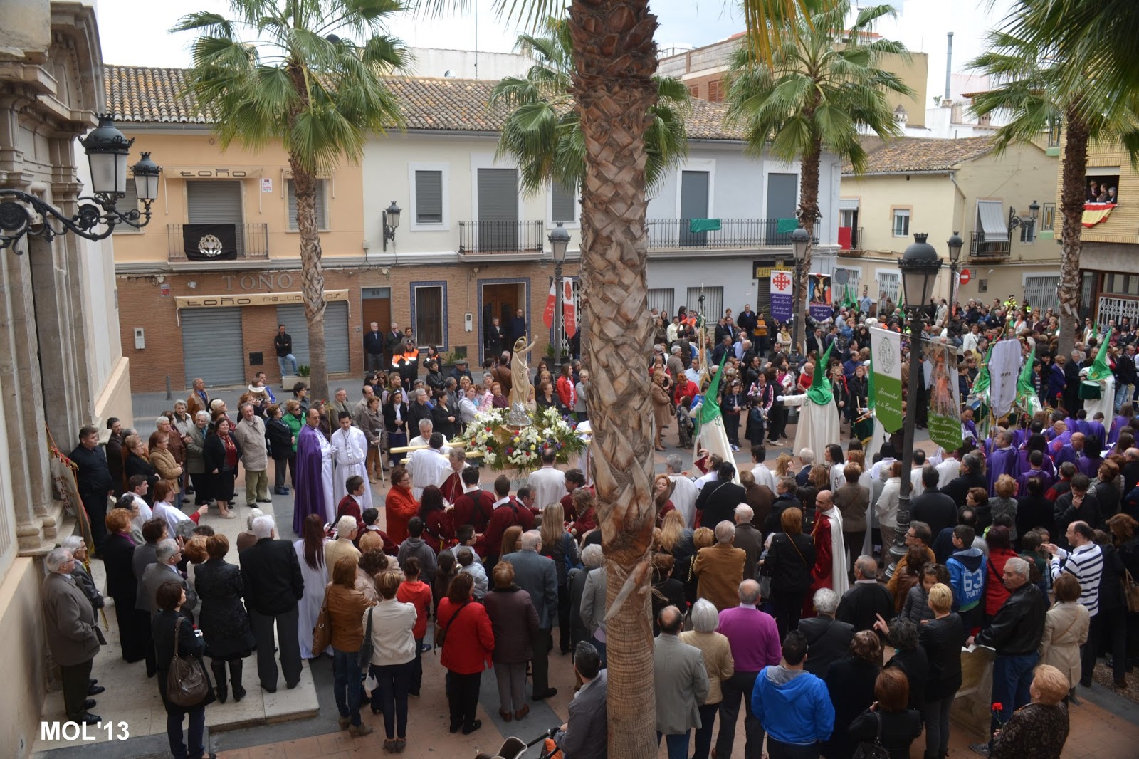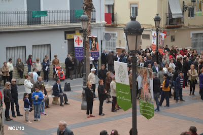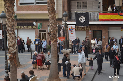 Después de la Misa las Hermandades han salido de la Iglesia y se preparan para la última procesión con el Resucitado, para llegar a la Plaza de la Iglesia.