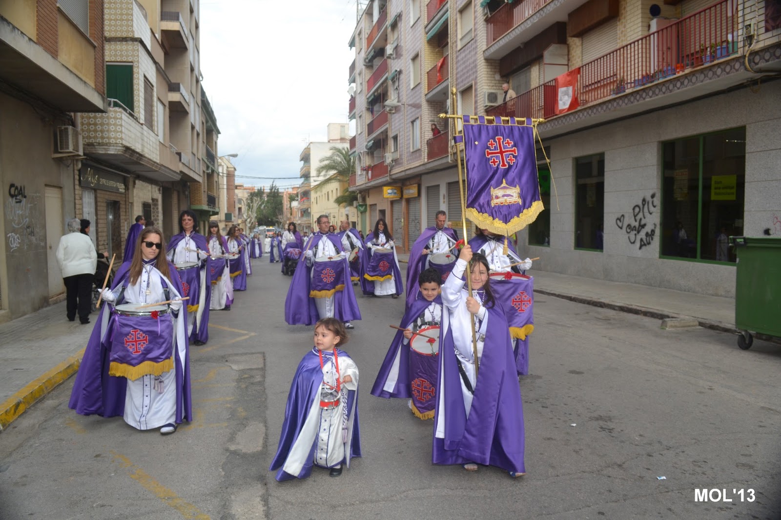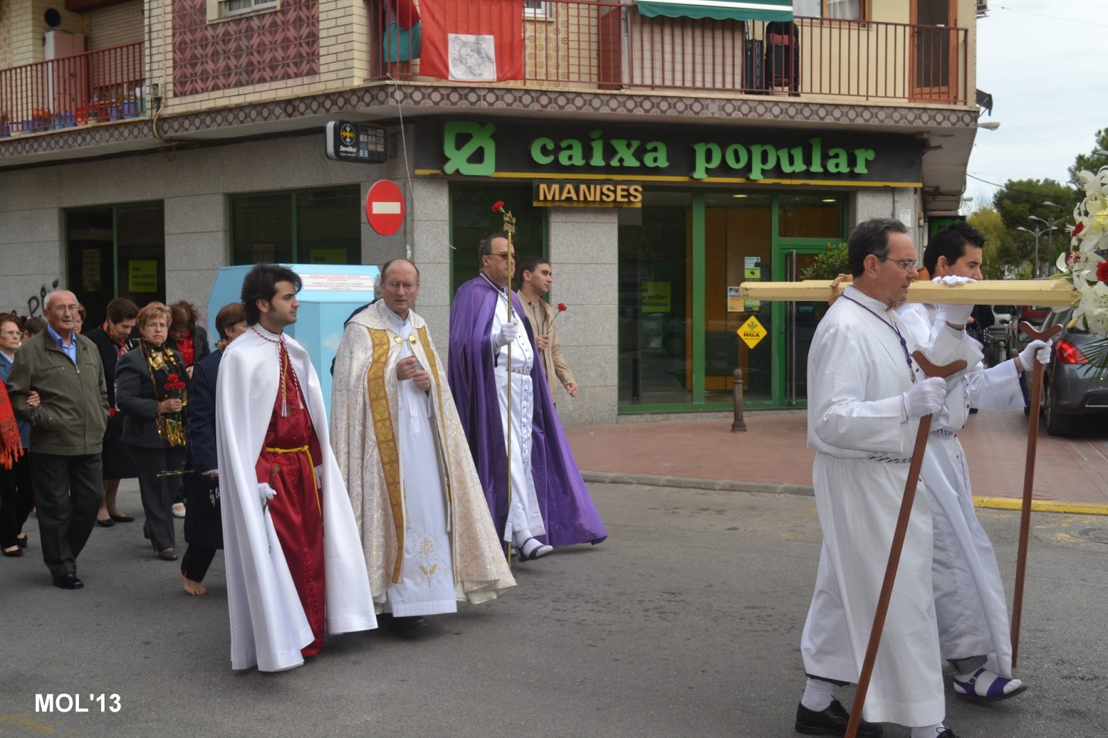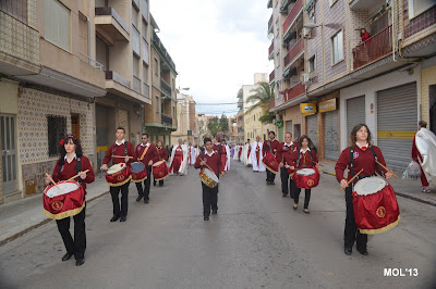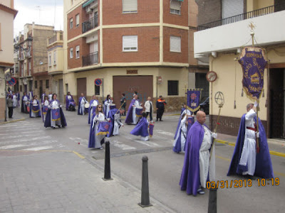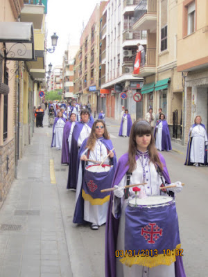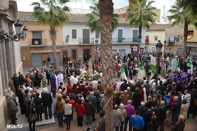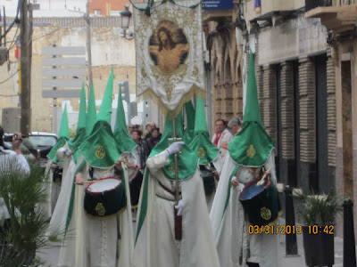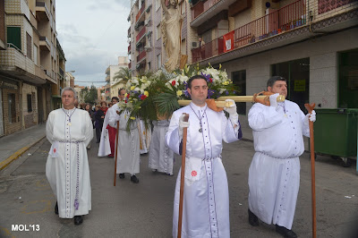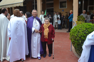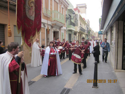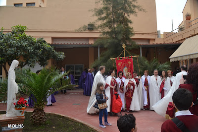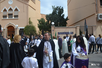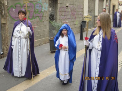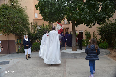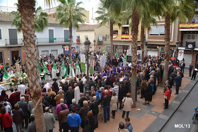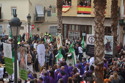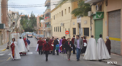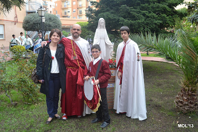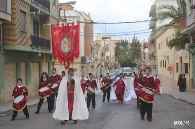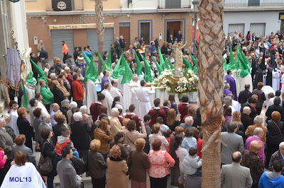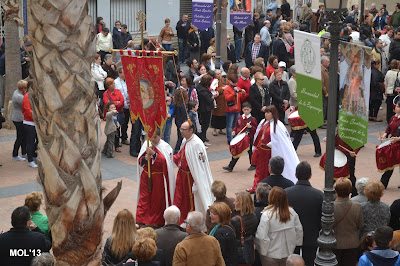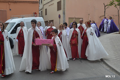 El día empezaba a las 9:30 horas en que se celebraba la Misa en la Parroquia del Inmaculado Corazón de María, la cual ha estado participada por los hermanos de las dos Hermandades, tanto en las lecturas, preces, cantos, etc. y desde allí -formadas las Hermandades de El Rojos i el Verts– se ha formado la procesión que bajando por la calle del Doctor Fleming, Mayor y a parar a la Plaza de la Iglesia- se ha llegado a las 11:30 horas a la Parroquia de San Juan Bautista, donde en la plaza ha tenido lugar el ENCUENTRO GLORIOSO.