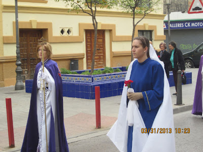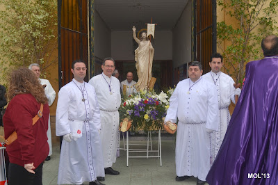 Como es habitual, desde la Parroquia del Inmaculado Corazón de María han salido las Hermandades de la Flagelación y del Santo Sepulcro, acompañando a Jesús Resucitado. Las Hermandades de La Esperanza y de la Soledad llevaban a la Virgen.