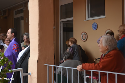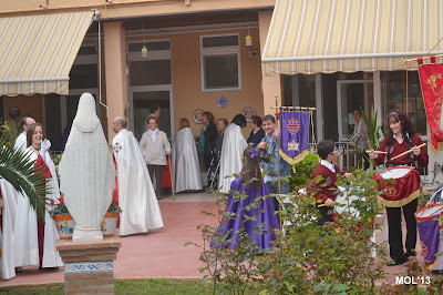 Para finalizar, en desfile informal, juntas las cuatro Hermandades, nos hemos dirigido a la Casa Residencia para hacer entrega a las hermanas del centro de las Monas que la Junta de Hermandades tenía preparadas para los ancianos que allí están.