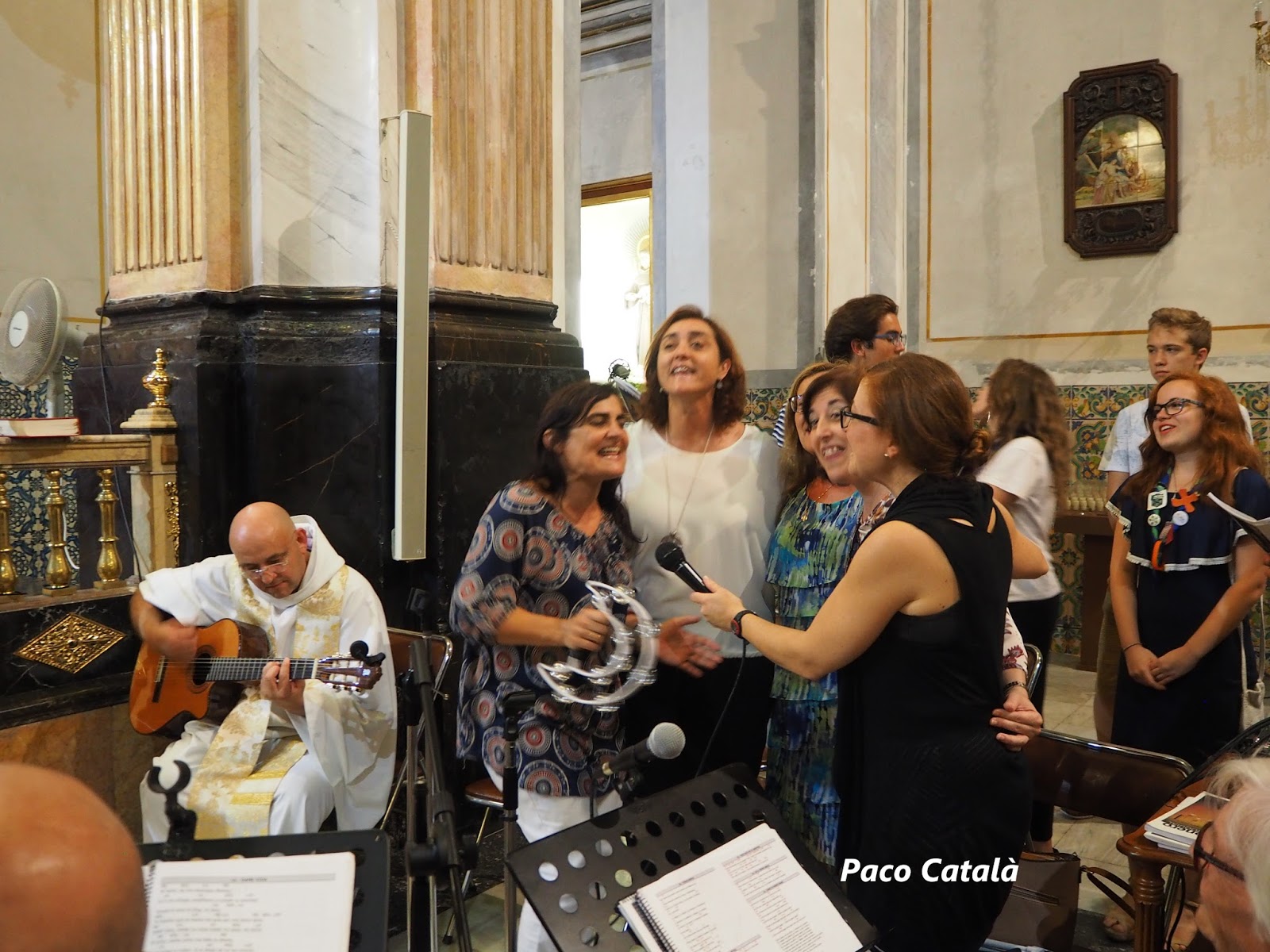 Acompañado por el Cura Párroco de la Parroquia, Don Pablo Tos, el viernes día 1 de Septiembre, a las 20:00 horas tuvo lugar la Misa de despedida que ha estado acompañada por el grupo de jóvenes que habitualmente cantan en la misa de los Juniors que se celebra los sábados por la tarde, y que hoy han querido acompañar con sus guitarras y cantos esta última misa de Don Ricardo.