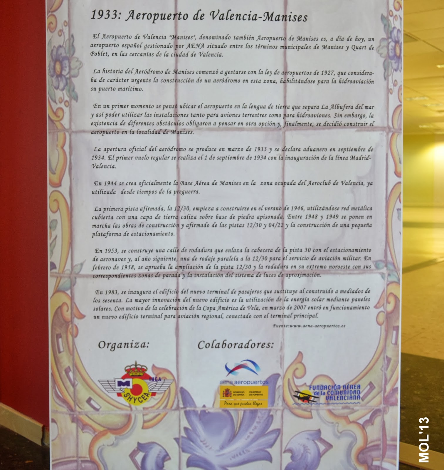 El Aeropuerto de Manises-Valencia, celebra una exposición, de sus orígenes y desarrollo, con motivo del 80 Aniversario de su puesta en funcionamiento.