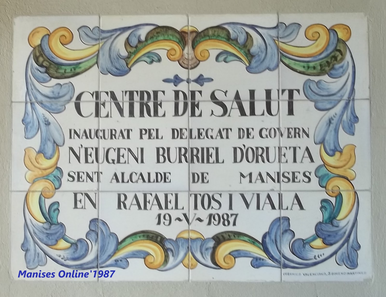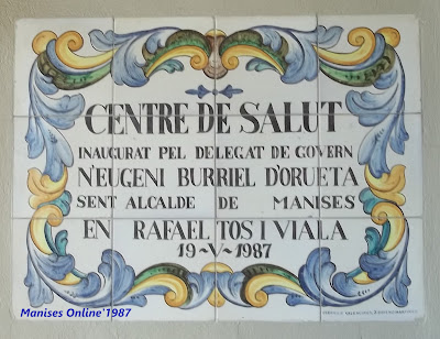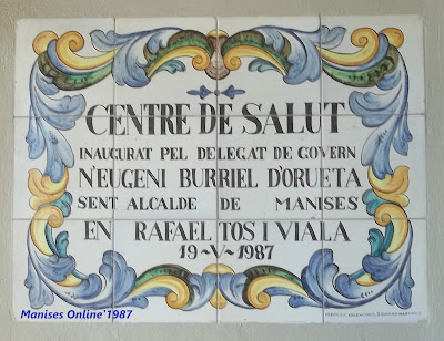 Este es el mural de azulejos que se encuentra a la entrada del Ambulatorio-Centro de Salud de Manises, en la Avgda. de la Generalitat Valenciana.