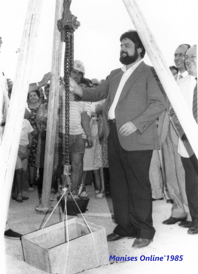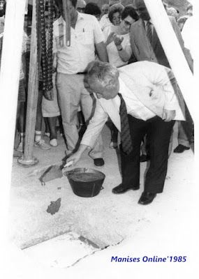 IMÁGENES DE LA COLOCACIÓN DE LA PRIMERA PIEDRA EN EL AMBULATORIO-CASA DE SALUD DE MANISES, EL MIÉRCOLES DÍA 31 DE JULIO DE 1985.