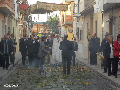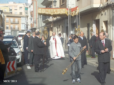 La Parroquia de San Juan Bautista ha celebrado la tradicional procesión con la que se lleva la comunión a todos los enfermos o impedidos para salir de su casa, en lunes fiesta de Sant Vicent Ferrer, Patró dels Valencians.