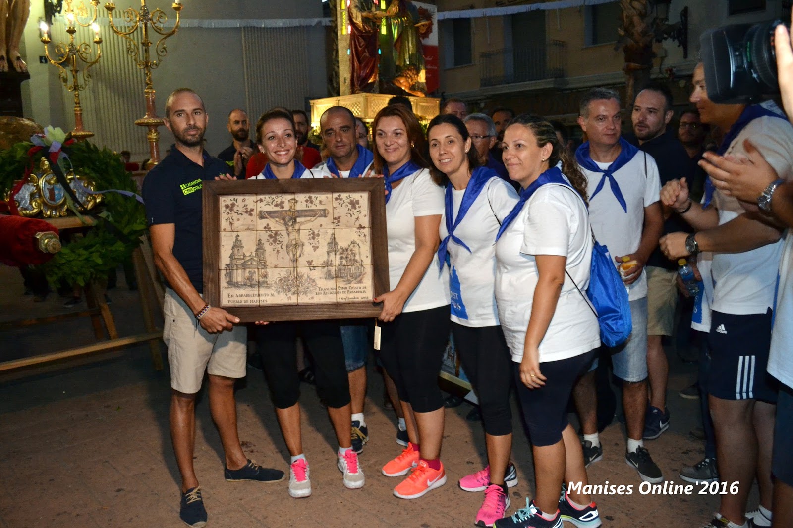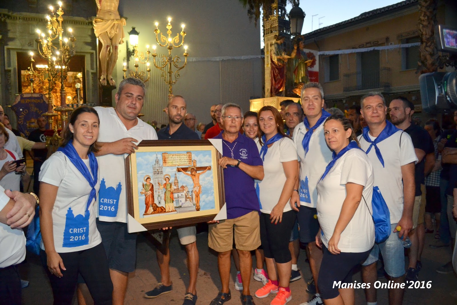 Por parte de Manises se les hizo entrega de un cuadro de azulejos, en el que se podía ver -en su parte izquierda la imagen de Santas Justa y Rufina y a la derecha la imagen del Cristo-, en el fondo la Parroquia de San Juan Bautista.