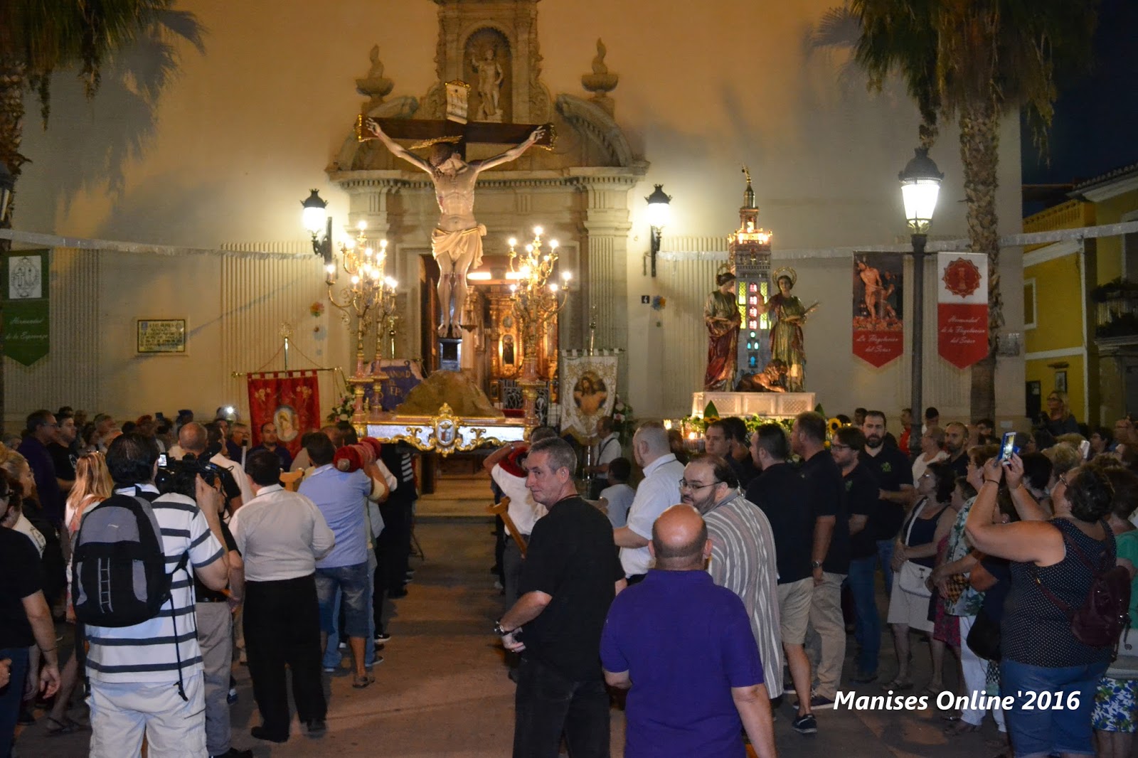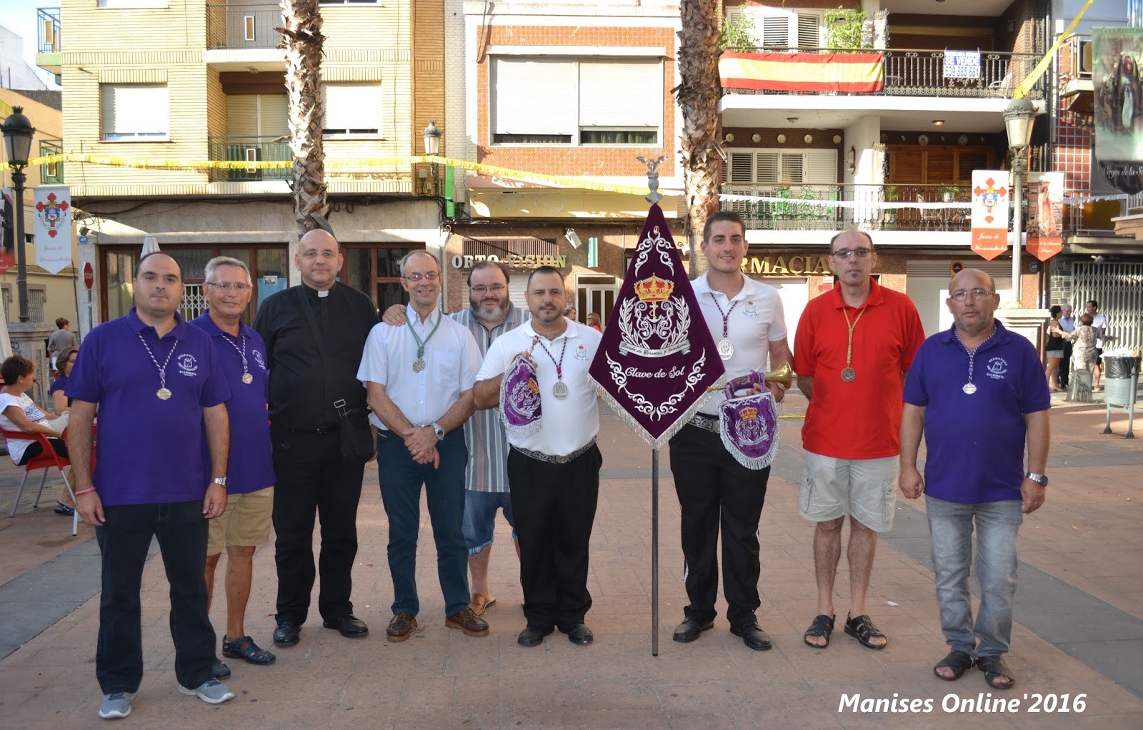 A la entrada de Nuestra Ciudad nos habíamos congregado maniseros pertenecientes a las Hermandades de Semana Santa y otros miembros de las diversas asociaciones que han contribuido con su presencia a que este acto multitudinario, a pesar de la hora, haya sido un acontecimiento en este comienzo del mes de Septiembre.