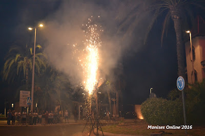 Posteriormente, y por la Calle Valencia, nos dirigimos al Barrio Socusa, donde la Asociación de San Antonio había preparado un fenomenal recibimiento: Imagen del Santo, con fuegos artificiales en su honor.