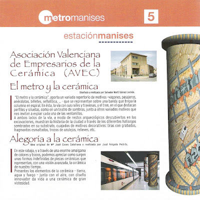 Manises -con su Ayuntamiento al frente- se sumó a la iniciativa y propuso que las paradas en Manises estuviesen impregnadas de ese toque cerámico que caracteriza a Nuestra Ciudad. No sé (porque no estuve en las conversaciones, ni he preguntado por ellas, ni ahora interesa) si la idea de que íbamos a tener mucha cerámica manisera en el Metro -que nos vendieron- era lo que ahora existe, lo que si sé es que gracias al Aeropuerto de Manises tenemos Metro.