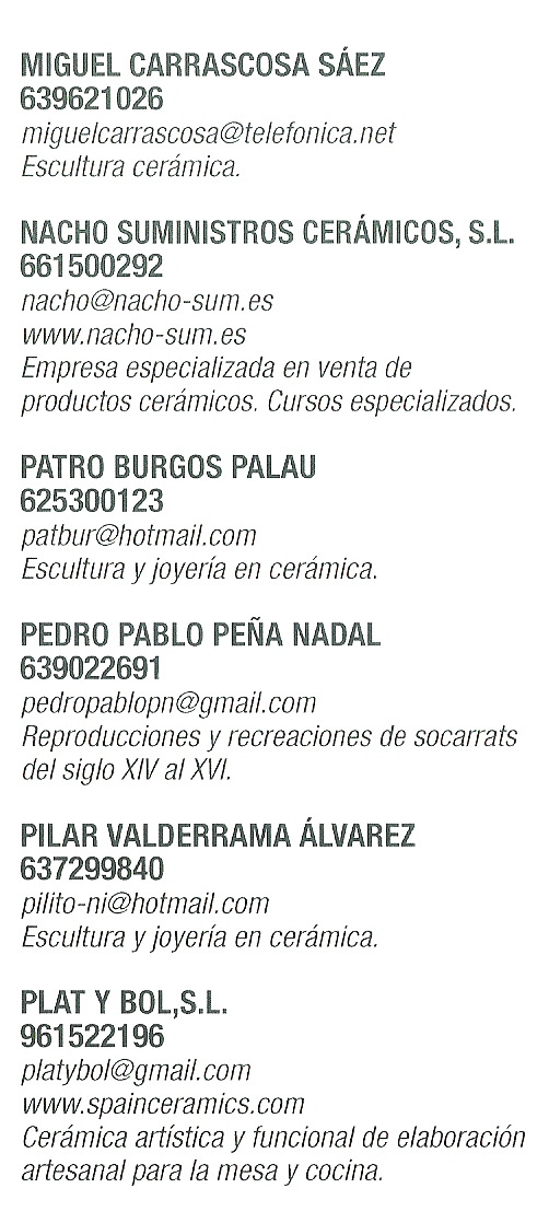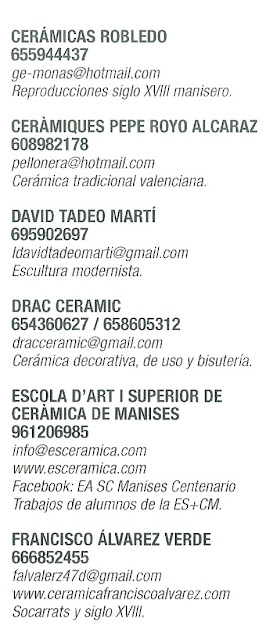 Existen expositores que no constan en el catálogo, por lo que pueden contactar con la Escola d’Art i Superior de Cerámica de Manises, ya que serán alumnos de la misma.