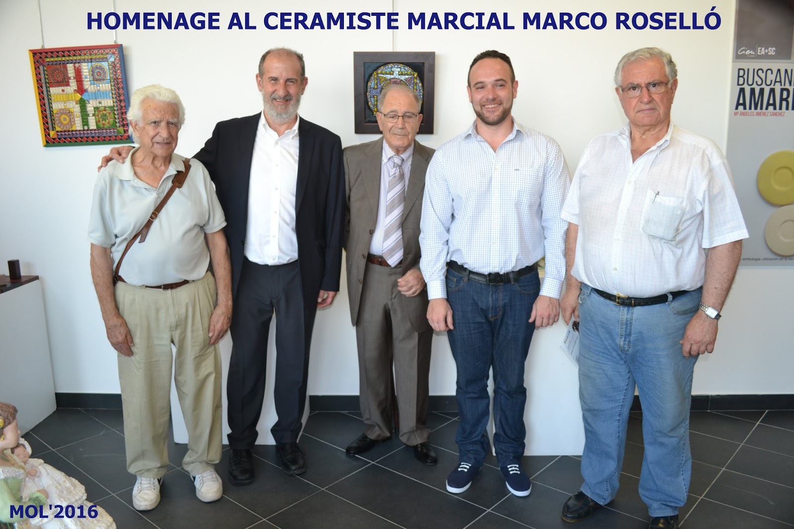 En la inauguración se celebró un pequeño homenaje a Marcial Marco Roselló, que también expone en esta ocasión, y que más tarde se prolongaría en el Auditorio Germanías, donde se le rindió un emotivo homenaje con motivo de su larga y fructífera trayectoria como ceramista, y cuyo reportaje también se puede ver en este blog.