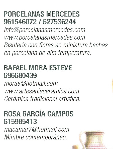 Al final de estas fotografías se puede conocer el nombre, dirección y teléfono de los artistas presentes en la muestra, a los que se pueden dirigir directamente si existen personas interesadas en su fabricación.