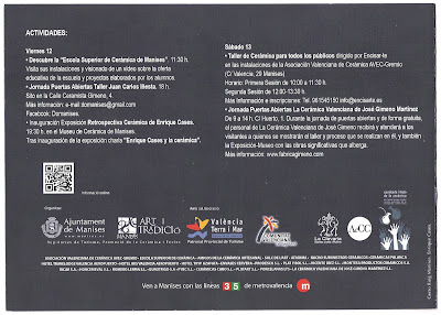Cuando llegan las fiesta del mes de Julio, fiestas dedicadas a la Cerámica, en cuyo nombre y representación se ofrecen a las Santas Justa y Rufina, Patrona de la Cerámica y de Manises, los Artesanos de Manises y de fuera de ella, se reúnen en una Exposición, donde ofrecen sus trabajos artesanos y los muestran como homenaje a los ceramistas, a Manises y en general a todos los que aman y han trabajado en este oficio tan nuestro.