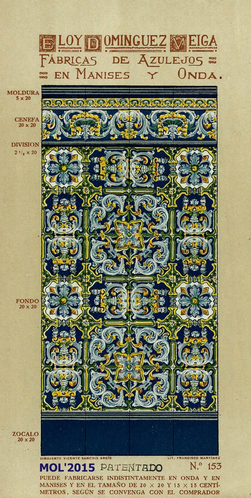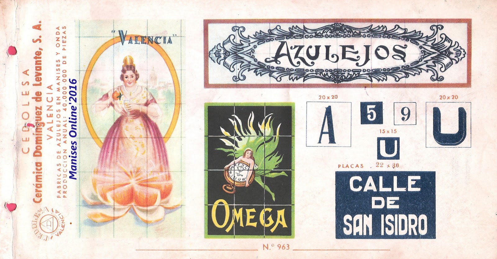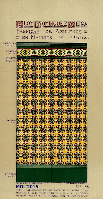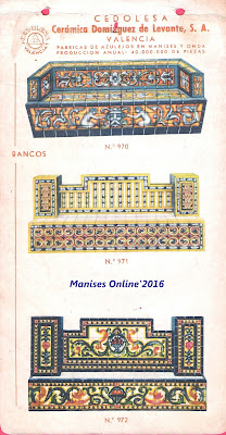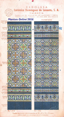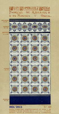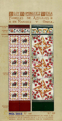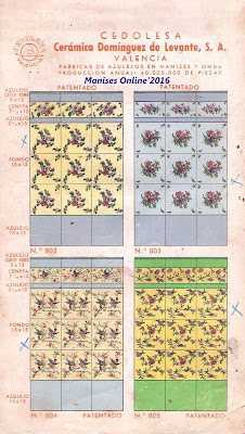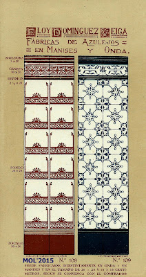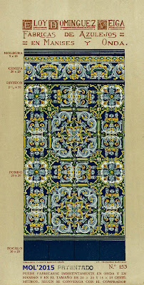 Son dos años, cerca de tres, los que llevo estudiando e investigando todo lo que concierne a Eloy Domínguez y su relación con Manises, tanto sobre su biografía que se encuentra en el Menú por orden alfabético, como por estos 3 catálogos que editó en su época de fabricante de azulejos y que ahora podrán ver. Para mí se merece ser un Manisero Ilustre, que aunque no nació en Manises, se merece este honor por su trabajo y por la aportación que hizo a la Ciudad, empleando en sus fábricas -en el momento más próspero de su actividad- a cerca de 900 trabajadores, y llevando el nombre de nuestra Ciudad por todo el Mundo, por las exportaciones que realizaba.