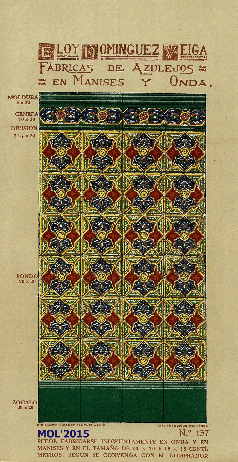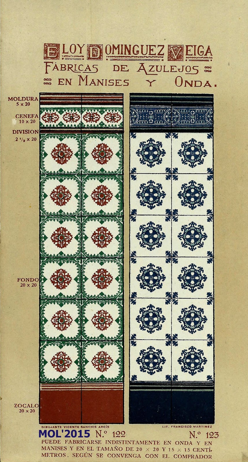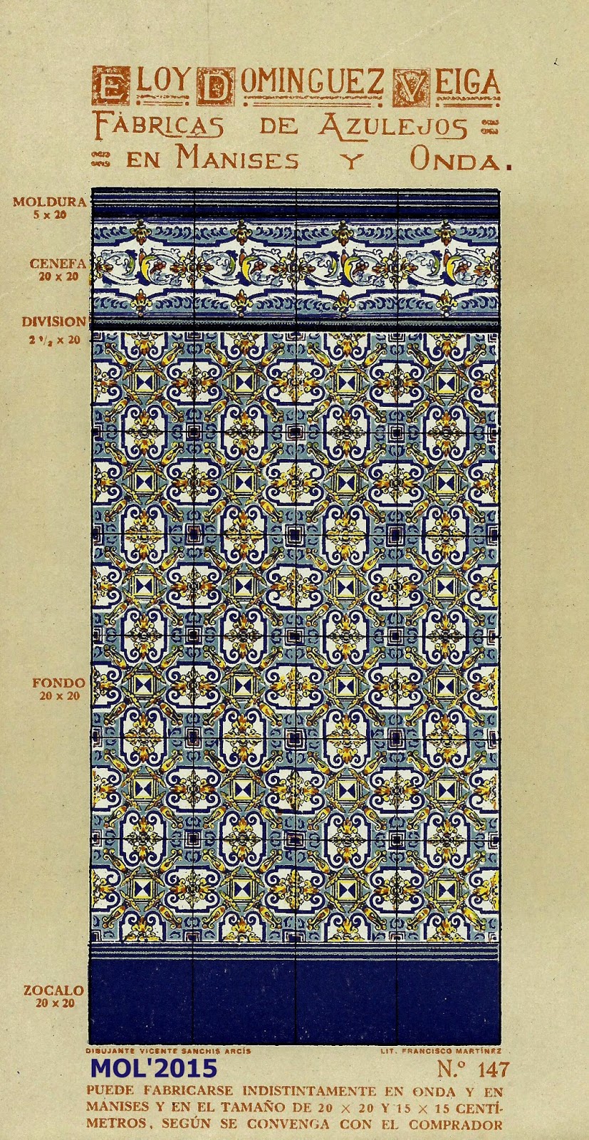 Son dos años, cerca de tres, los que llevo estudiando e investigando todo lo que concierne a Eloy Domínguez y su relación con Manises, tanto sobre su biografía que se encuentra en el Menú por orden alfabético, como por estos 3 catálogos que editó en su época de fabricante de azulejos y que ahora podrán ver. Para mí se merece ser un Manisero Ilustre, que aunque no nació en Manises, se merece este honor por su trabajo y por la aportación que hizo a la Ciudad, empleando en sus fábricas -en el momento más próspero de su actividad- a cerca de 900 trabajadores, y llevando el nombre de nuestra Ciudad por todo el Mundo, por las exportaciones que realizaba.