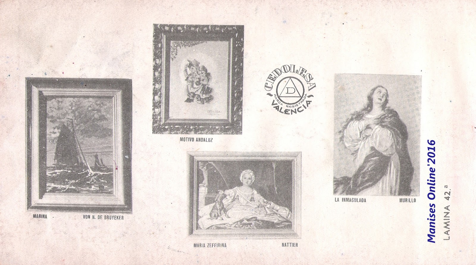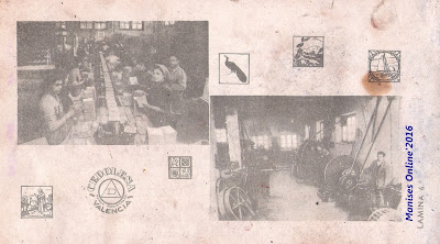 Además existe una más completa especificación en los decorados que muestra y -la más importante por la innovación- es que en el reverso de cada una de las láminas se incluyen fotografías de las diferentes fábricas que tiene en toda la Región Valenciana, así como fotografías de las diferentes secciones de las mismas y a trabajadores, pintoras y muestras de catálogos o cuadros que también llegó a fabricar en sus fábricas. Un catálogo extenso y demostrativo de la evolución, a mejor, que iba experimentando día a día.