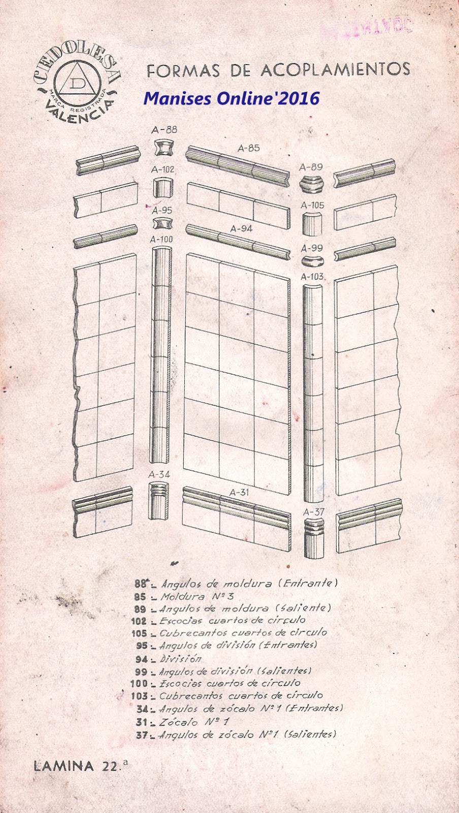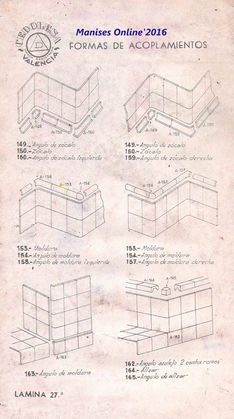 Mi agradecimiento a todas las personas que me han ayudado a conseguir que pudiera recopilar estos catálogos, historia de Manises y sus hombres que contribuyeron en su día a que Nuestra Ciudad pudiera llegar a ser, con la ayuda inestimable de técnicos maniseros y de trabajadores tanto de Manises como de los pueblos que vinieron a formar parte de la plantilla de esta y de otras fábricas de Manises.