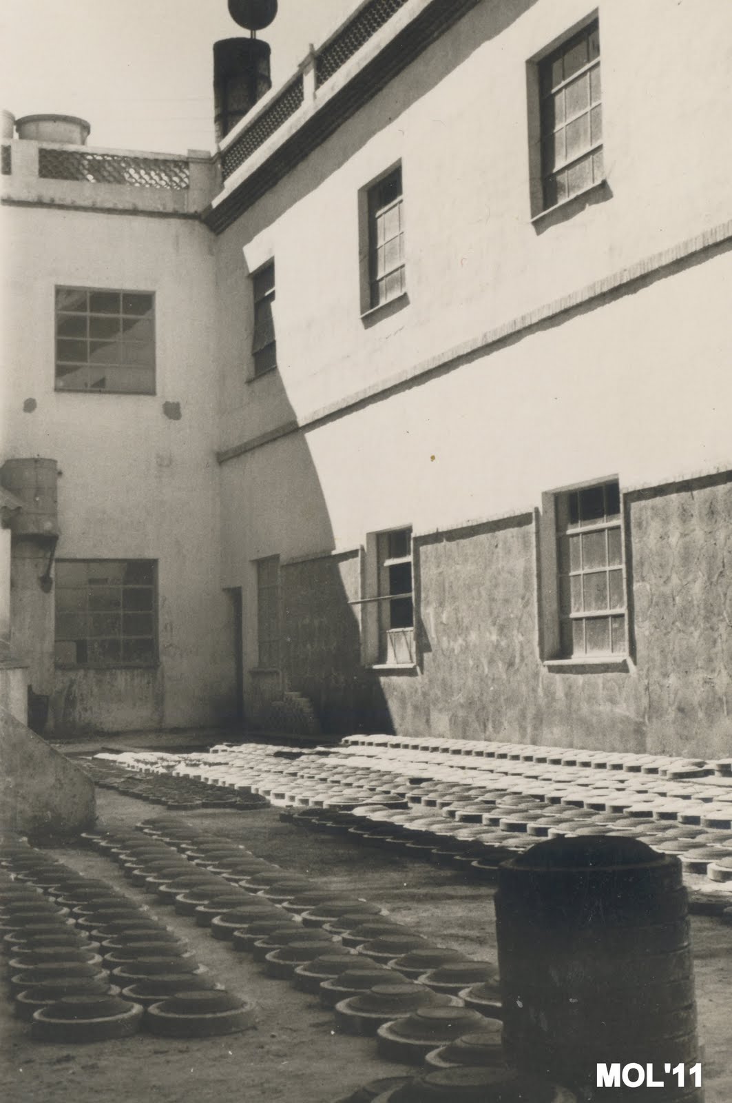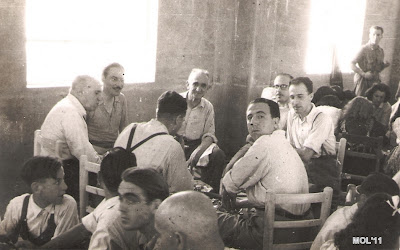 Si la fotografia de la sala de montage era excelent, esta no es manco, ya que a l’igual que l’atra, tots cara a la paret, cara a la llum ( com es pot comprovar totes les finestres tenen la seua proteccio per a les hores de sol directe ) per a no deixar-se res per repassar. Es pot apreciar que totes les rodes tenen una llum damunt, que servia per a que quan el sol s’amagava es poguera continuar treballant i poder vore’s.