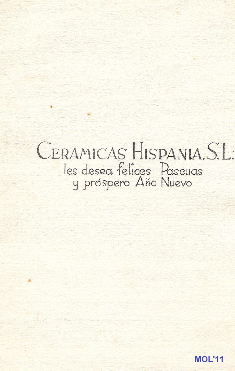Tarjeta de felicitacio nadalenca de “Cerámicas La Hispania”.