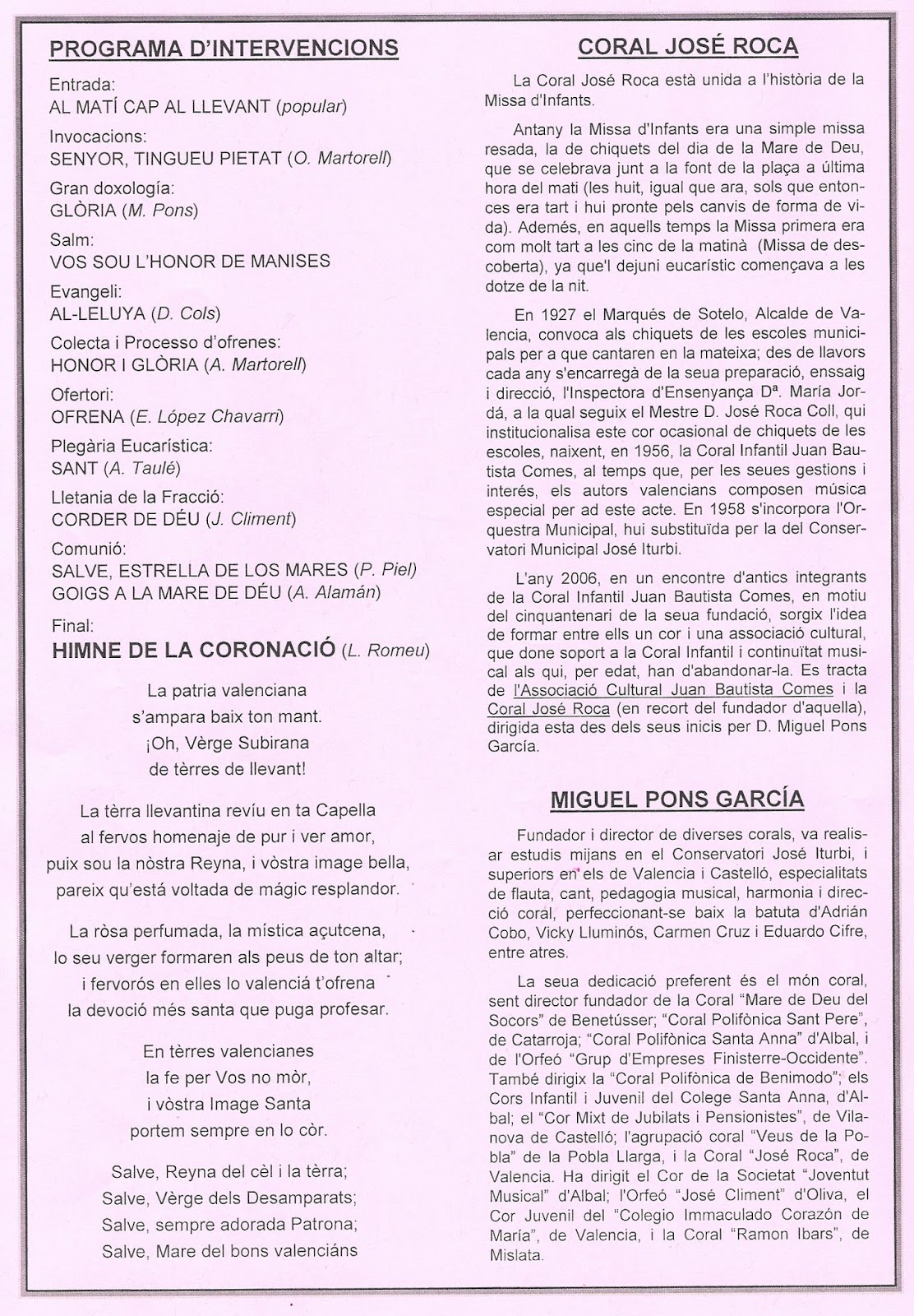 La Coral José Roca, dirigida por Miguel Pons García, ha entonado los cantos en la celebración de la Eucaristía desde el Coro.