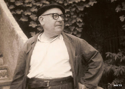 José Gimeno Martínez, el tio Pepet, en su fábrica de la calle del Huerto en Manises, al pie de las escaleras para subir a la parte alta de la fábrica donde está la exposición, mejor dicho el Museo de Cerámica de La Cerámica Valenciana, único e inigualable.