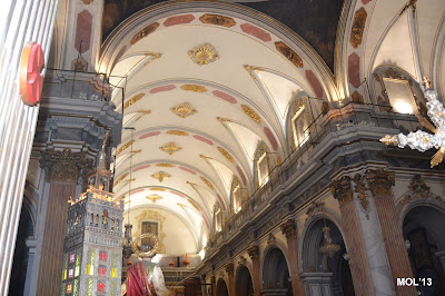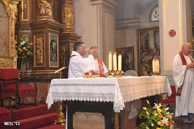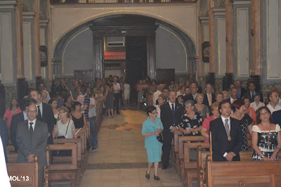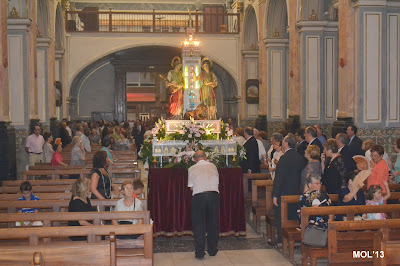 Comenzó la Misa a las 19:30 horas, presidida por el Vicario Episcopal, Don Valentín -Párroco de San Juan Bautista-, Don Jorge Miquel (hijo de Manises) y de dos sacerdotes. Particularmente noté a faltar la presencia de algún Cura Párroco de las Parroquias de Manises ya que era la Fiesta de las Patronas, es decir de toda Manises.