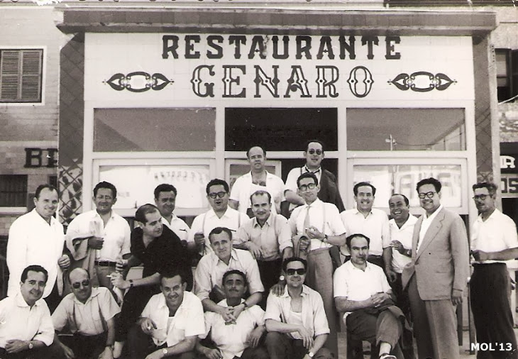 Según he podido averiguar, por mediación de entrevistas y por la colaboración de Vicente Miralles Ruiz, esta fotografía está hecha en -como se indica en el rótulo- el Restaurante Genaro, que estaba en la playa de Valencia, y a la que en el año 1950 o 1954, fueron estos amigos a celebrar la Fiesta a la Virgen de los Desamparados, de la que eran Clavarios.