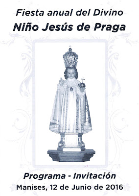 Tal y como estaba anunciado, en el programa que se muestra, la Cofradía del Niño Jesús de Praga de la Parroquia de San Juan Bautista de Manises, ha celebrado una solemne Misa y una concurridísima procesión por las calles de Manises, ciñéndose a las establecidas y que entran dentro del término de la Parroquia.